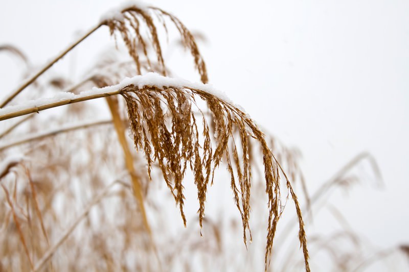 雪が積もったススキ