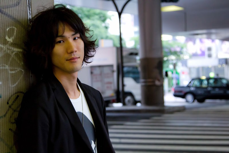 室内で壁に寄り掛かり正面を向いた若者の写真素材です。窓の外に道路と車が見える昼間の撮影です。ポートレートやファッション・広告素材におすすめです。