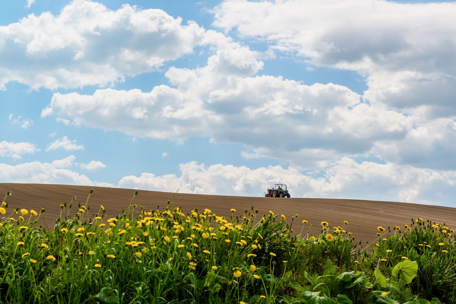 美瑛の耕す畑と青空