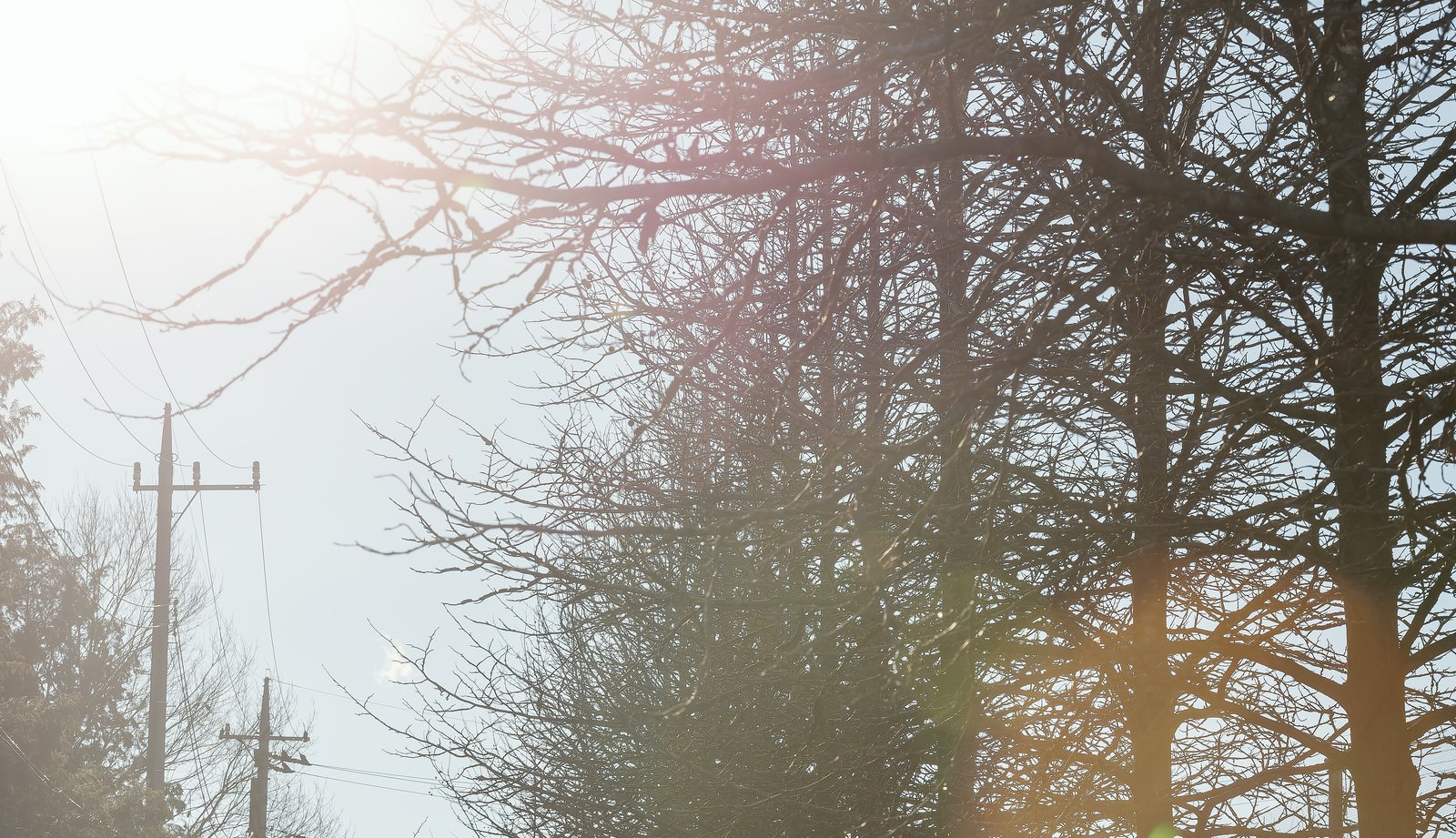 下から見上げた冬の木々を撮影した写真素材です。葉が落ちて枝だけになった大きな木に、左上から強い光が差し込んでいます。冬の季節素材や逆光写真の記事などにおすすめです。