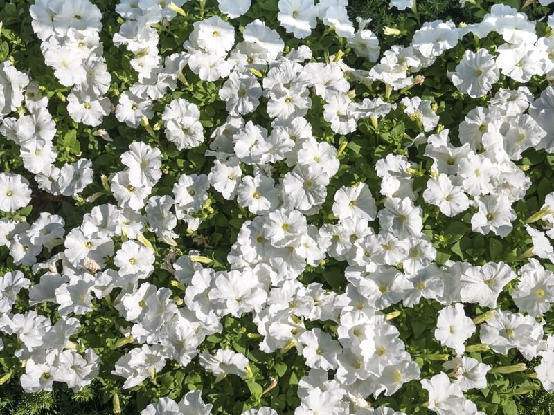 Dense White Petunia Flowers Blooming in Sunlit Garden