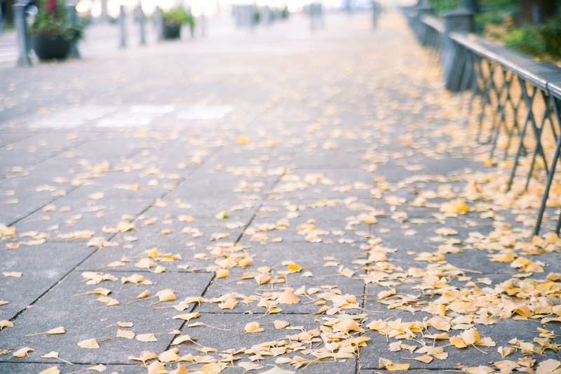 Sidewalk and Fallen Ginkgo Leaves