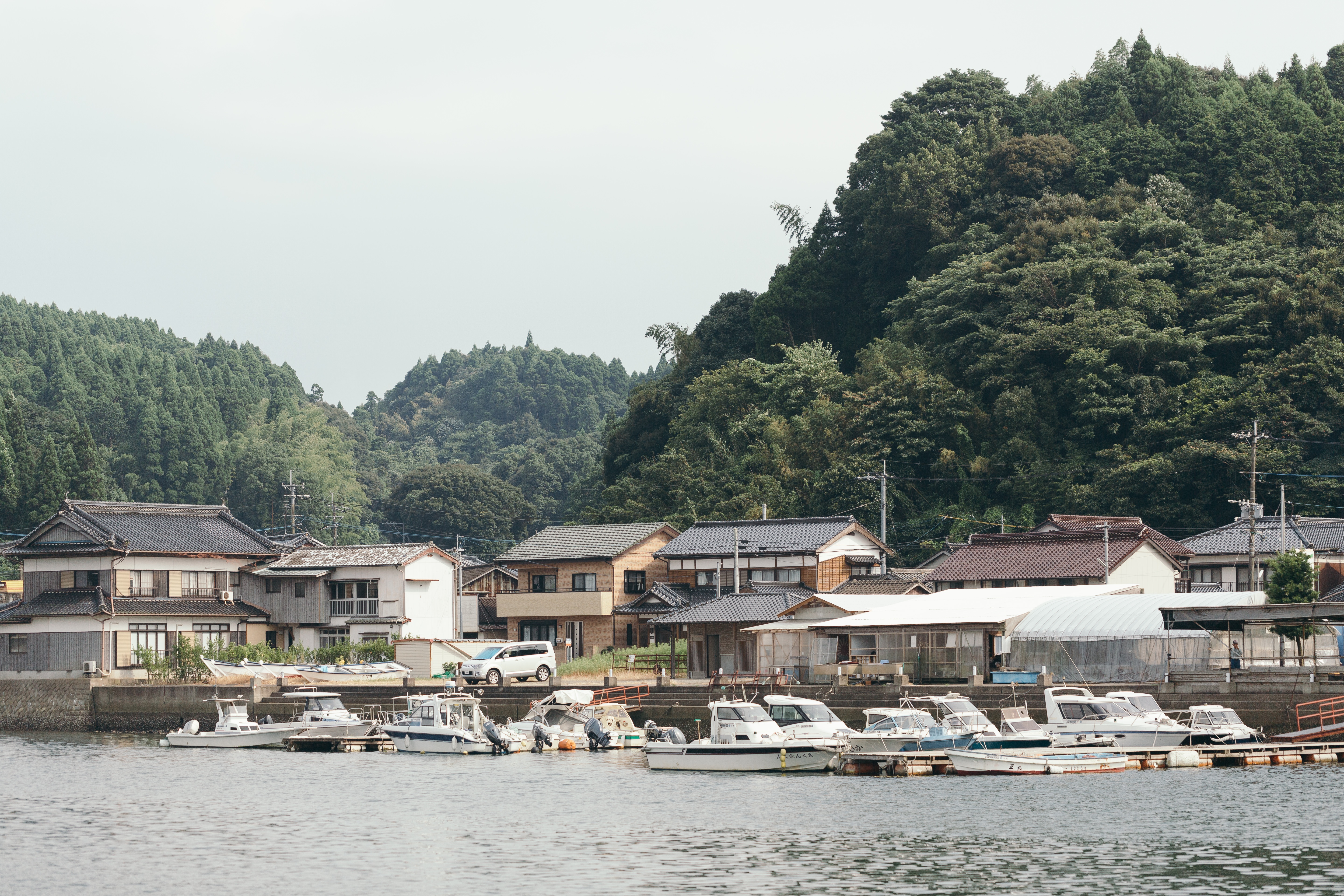 Fishing boats and village at Hatazu Port, Imari City, Saga Prefecture