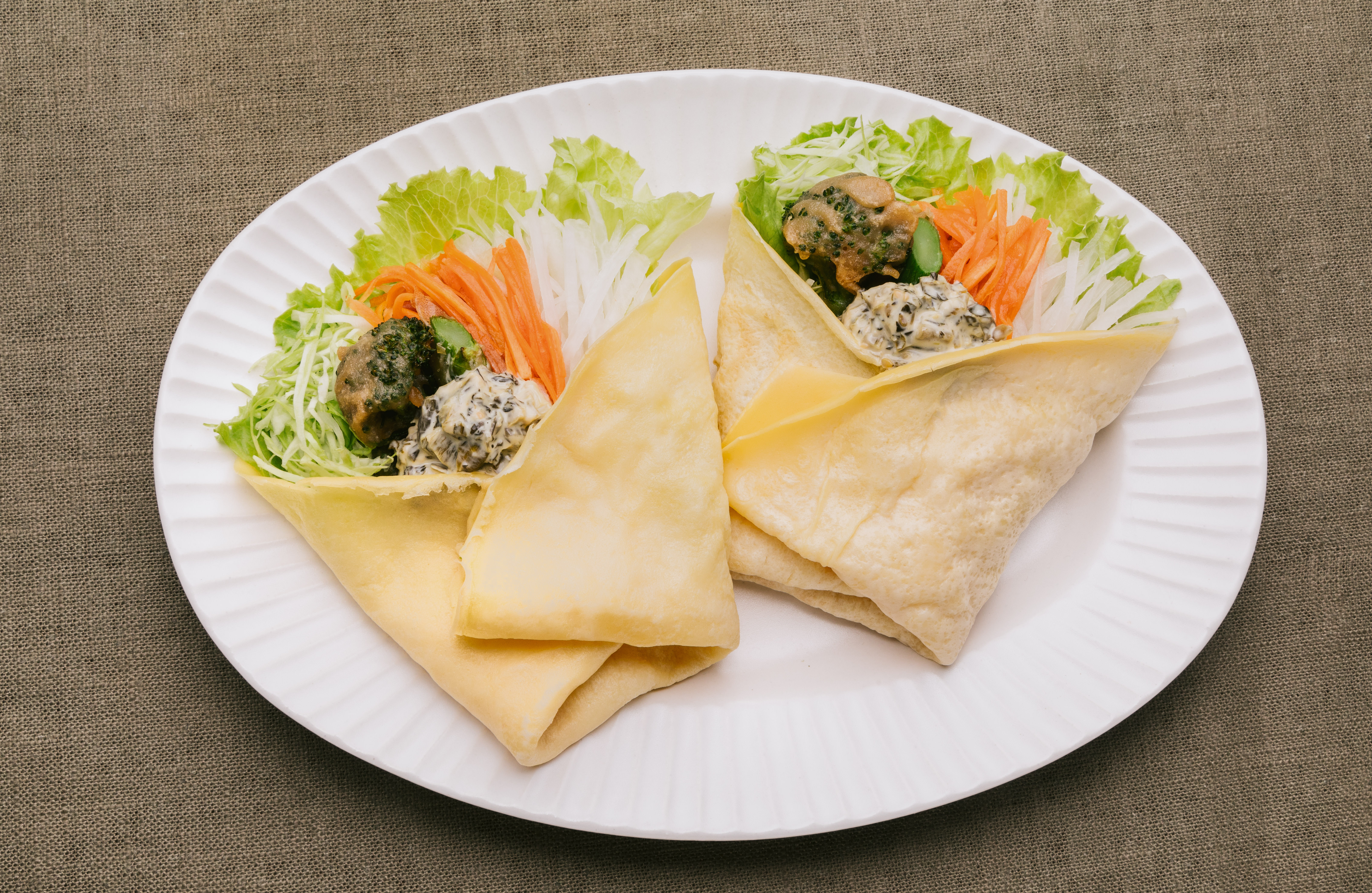 スイーツのようなサラダ高菜タルタルで食べる「ベジクレープ」のフリー写真素材