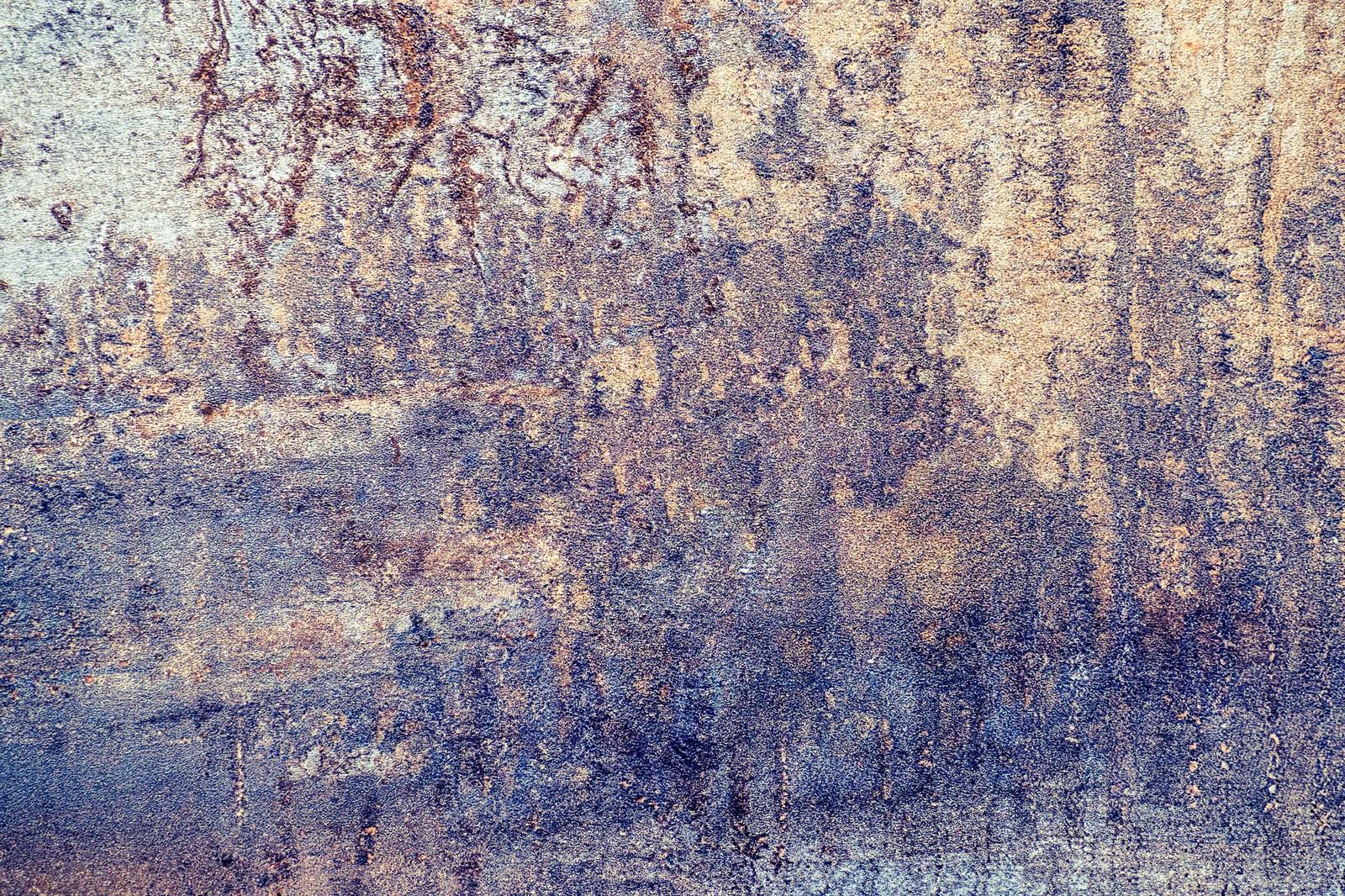 廃れた壁のテクスチャーの写真素材です。青みがかった色調に錆や汚れが付着し、経年劣化による凹凸と剥がれが見られます。ざらざらでボロボロな質感が特徴で、ホラー系デザインや廃墟表現、アンティーク風の背景素材として活用できます。