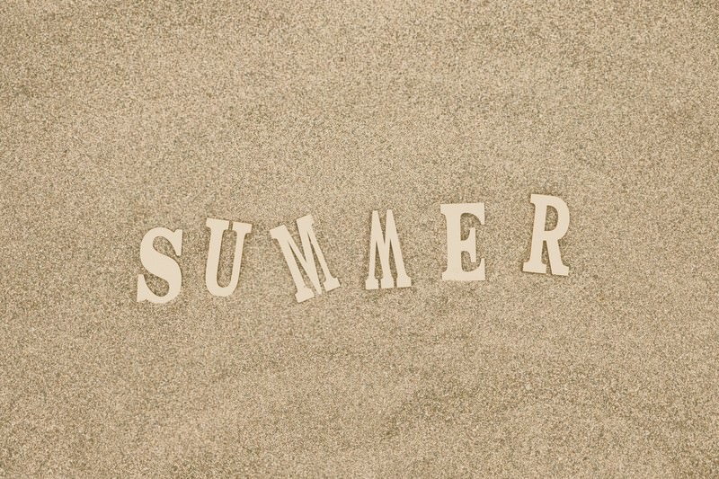 砂浜に白い文字で描かれたSUMMERの写真素材です。砂粒がきめ細かく広がる浜全体に、白い大きな文字で「SUMMER」と書かれており、背景には波や水が見えず砂のテクスチャーが全面に広がっています。夏のプロモーション、旅行広告、リゾート関連のデザインにおすすめです。