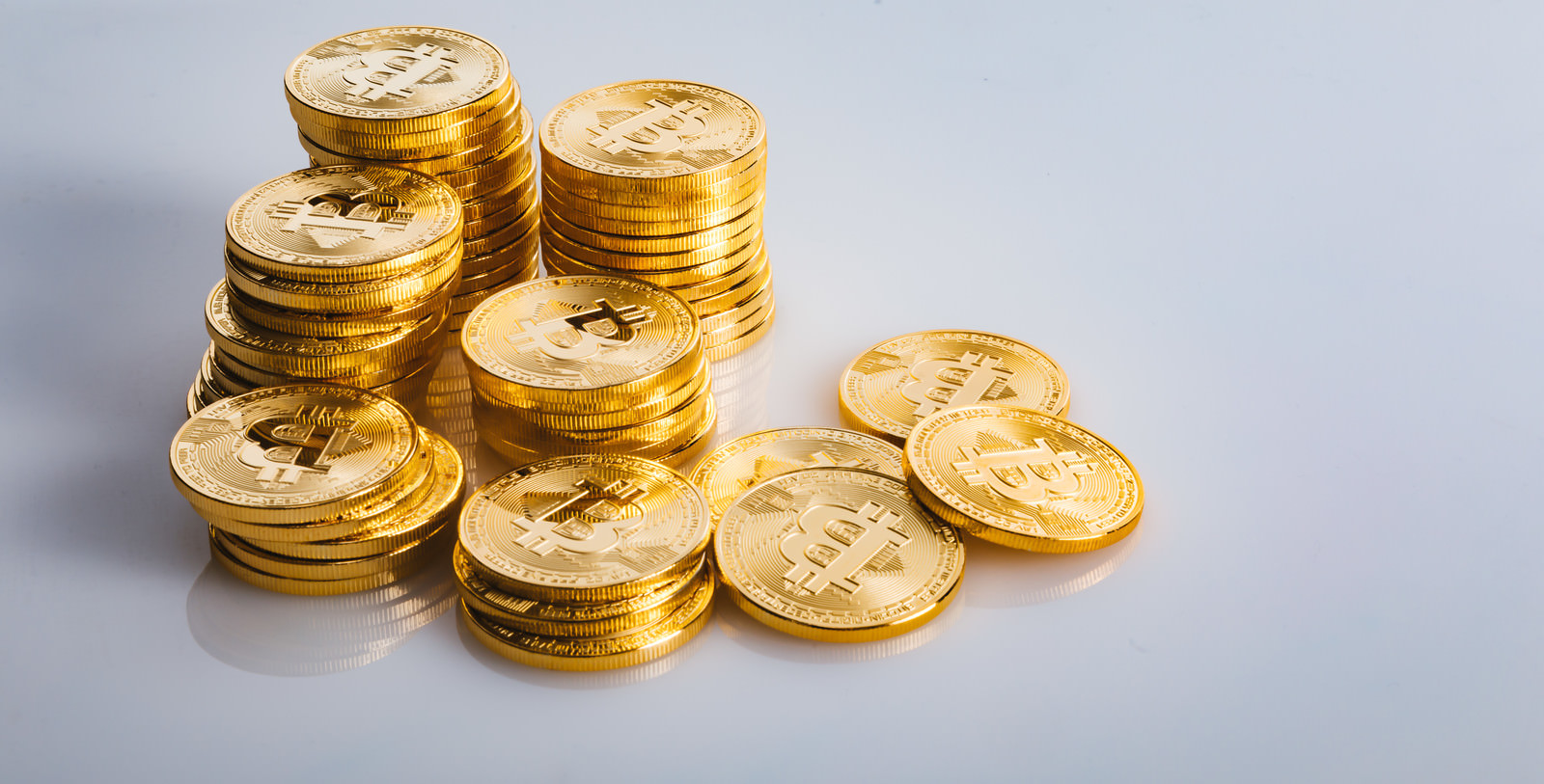 ビットコインのロゴが刻印された金色のコインの写真素材です。複数のコインが光沢のある金属の質感を持つように重なり合うように配置されています。仮想通貨や暗号資産、ブロックチェーン関連の投資記事やデジタル資産に関する金融コンテンツにおすすめです。