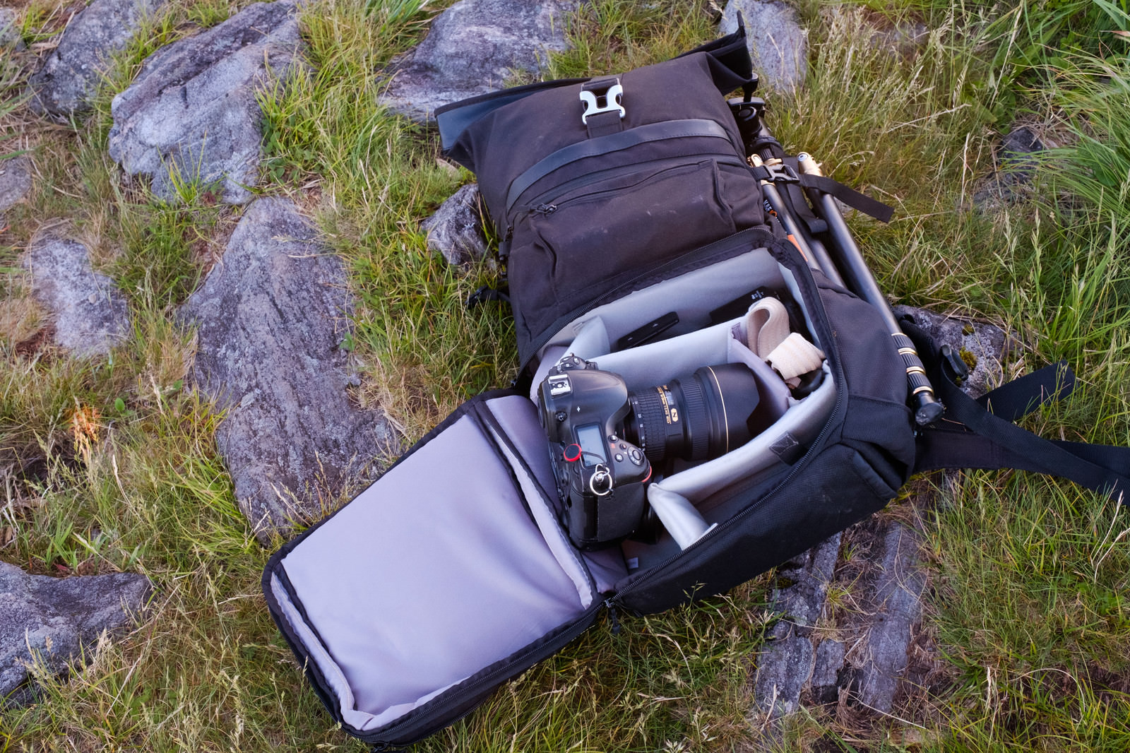 Crystal Ball Reflecting Sunset Bridge with Hiking Backpack