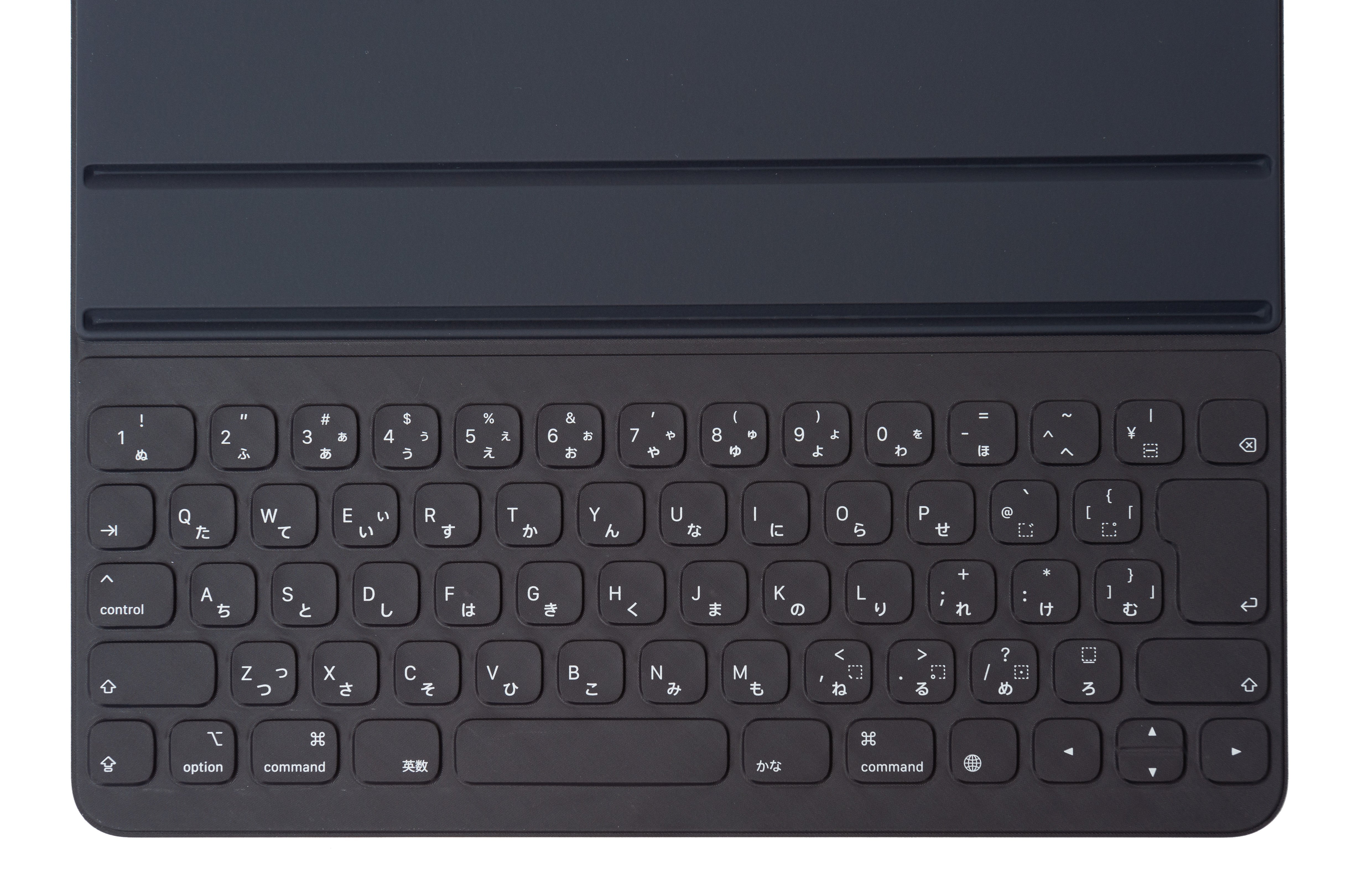 iPad Pro用のカバーキーボードの写真素材です。グレーのスリムなフォリオタイプで、タブレットと一体化でき、角度調整も可能な設計、Bluetooth接続対応の入力機器となっています。ガジェット紹介やタブレットアクセサリーの記事、製品レビューなどにおすすめです。