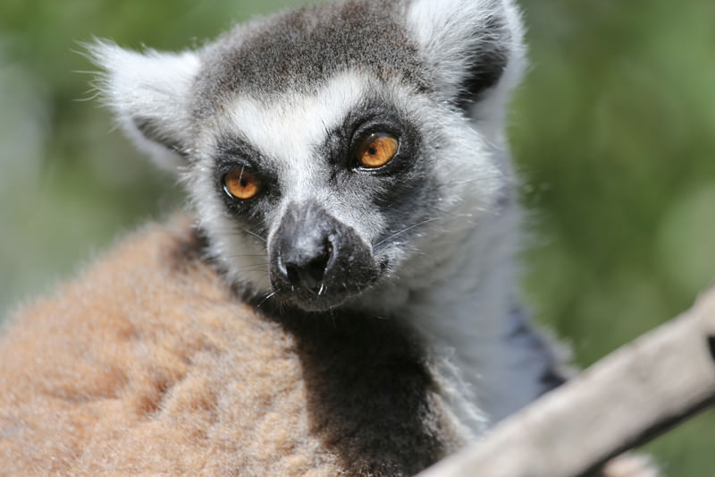 Close-up of Ring-tailed Lemur's Face Looking Back While Sunbathing