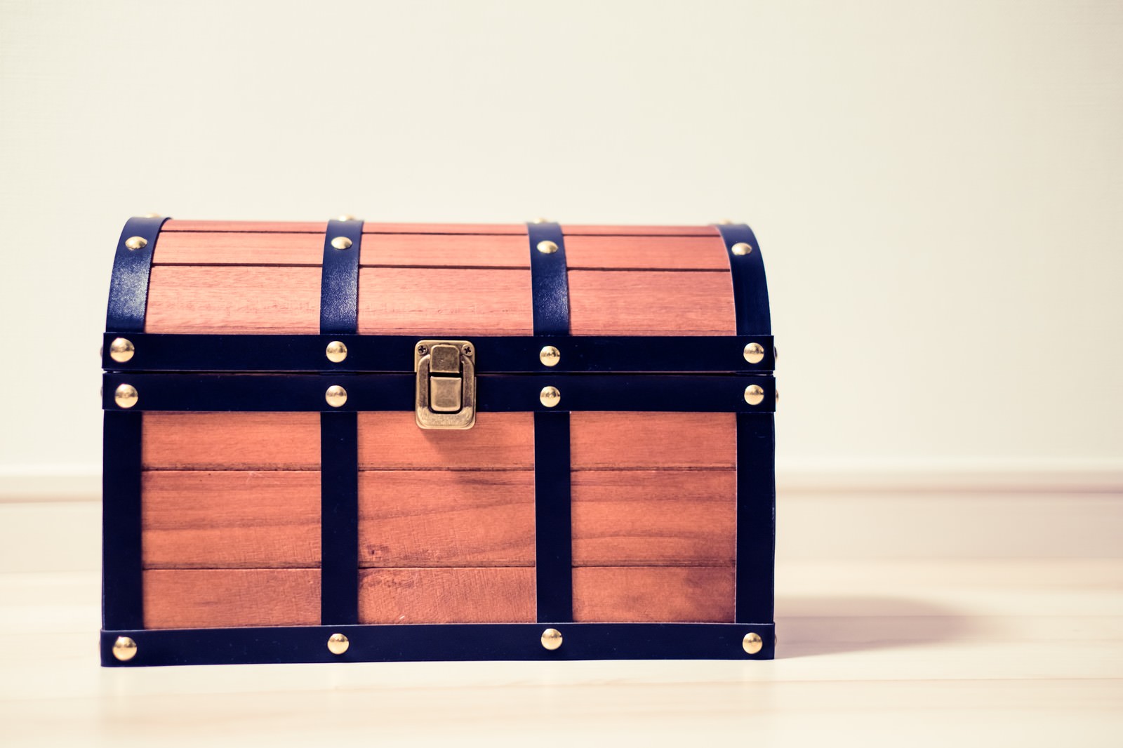 木製の宝箱の写真素材です。茶色の木材に黒い金具と留め金が付いたレトロなクラシックデザインで、ゲームやファンタジー系コンテンツの背景演出に最適な素材となっています。アンティーク風の装飾効果で、ミミックなどのモンスター素材としても活用できます。