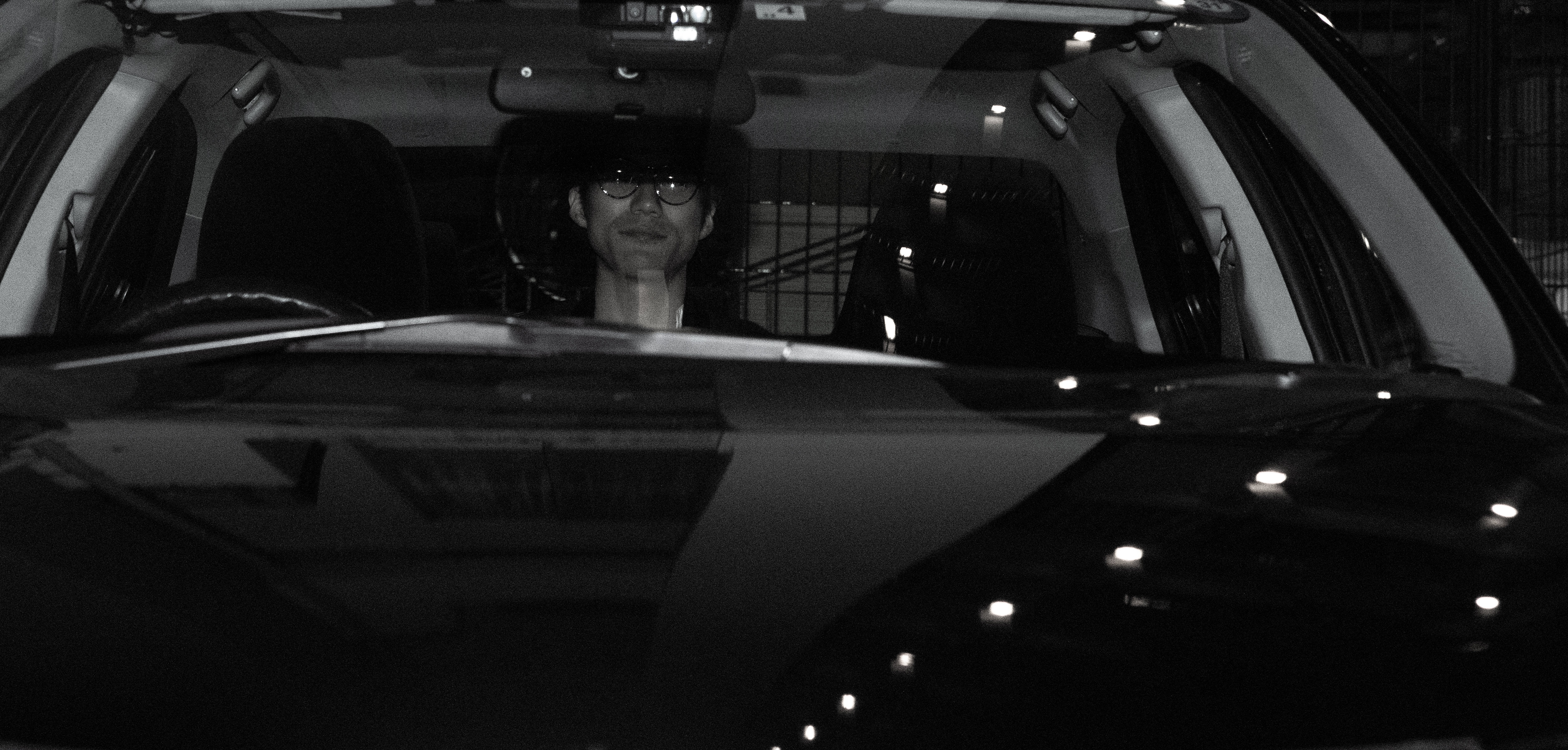 車の後部座席に隠れている男性の写真素材です。暗がりの中で身を潜める不審な人物のシルエットが浮かび上がっており、危機的な緊迫感を表現できます。サスペンス映画やドラマ、防犯関連のコンテンツ制作などにおすすめです。