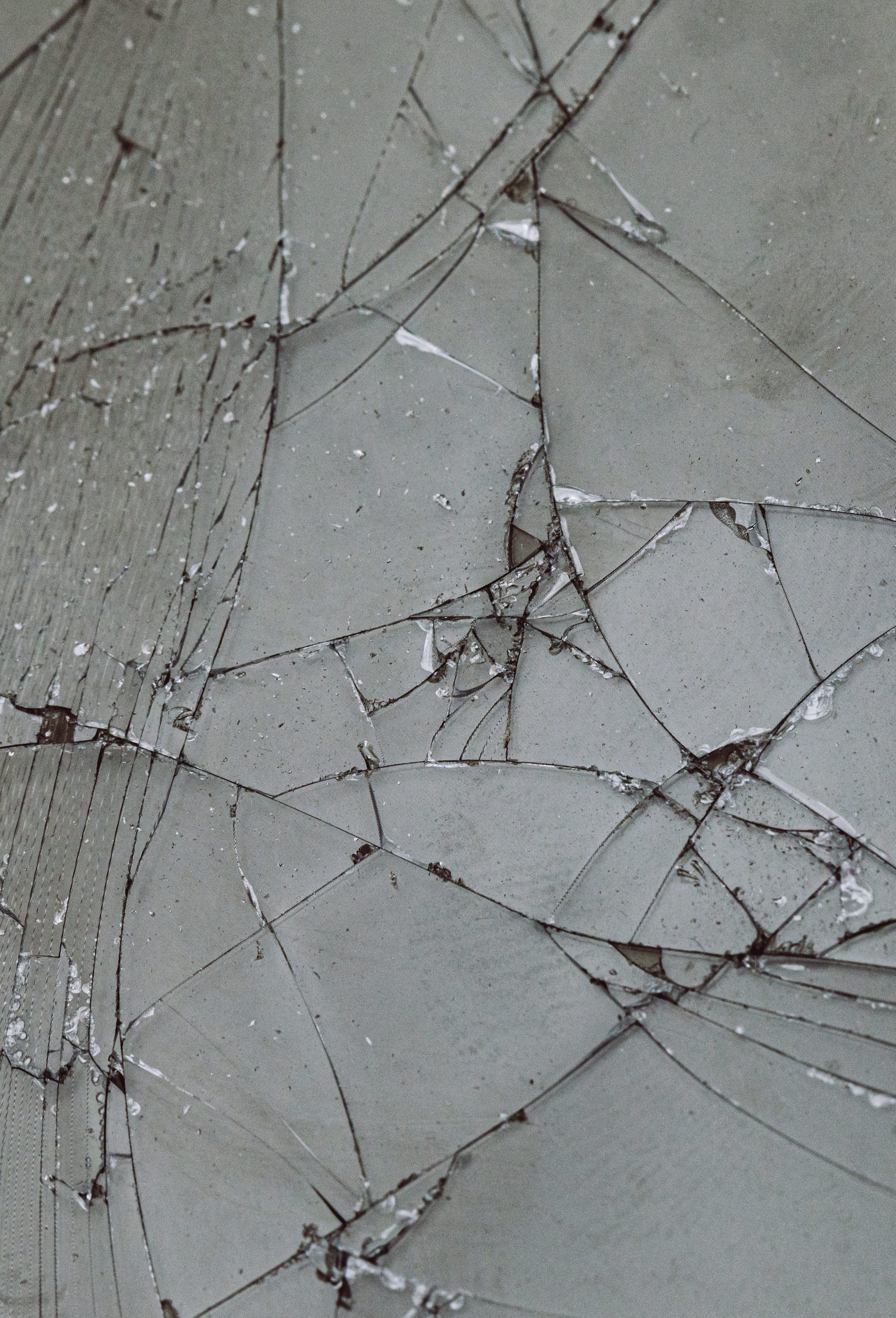 ヒビが入った透明ガラスの写真素材です。複数の亀裂が放射状に広がり、細かなクラックパターンが形成されています。破損表現やテクスチャーデザイン、背景素材などに活用できます。
