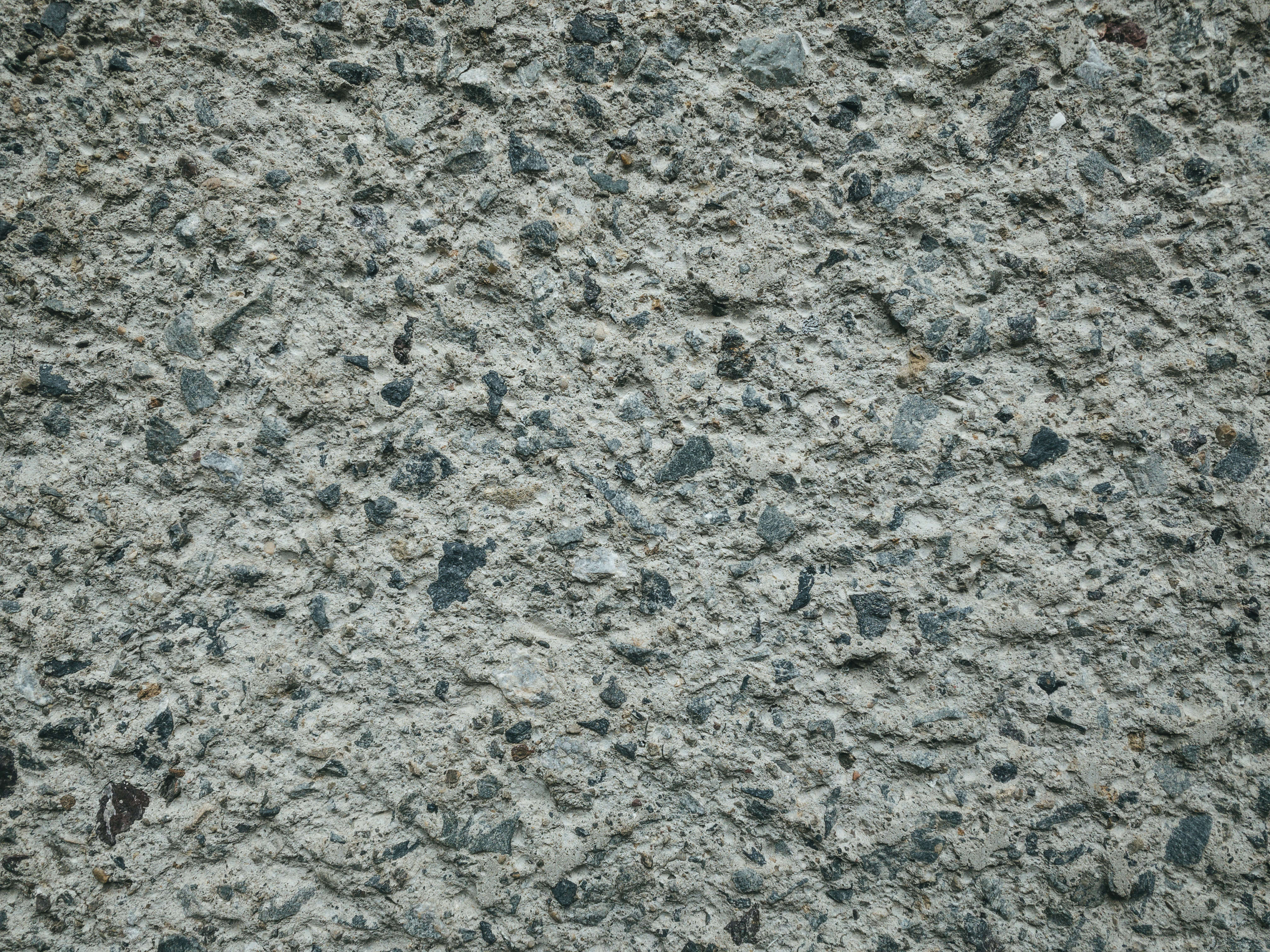 砂利の詰まったコンクリートの写真素材です。粗い表面に小さな砂利が均等に散りばめられており、グレー系の落ち着いた色合いをしています。建築資料やデザイン素材、背景素材として活用できます。