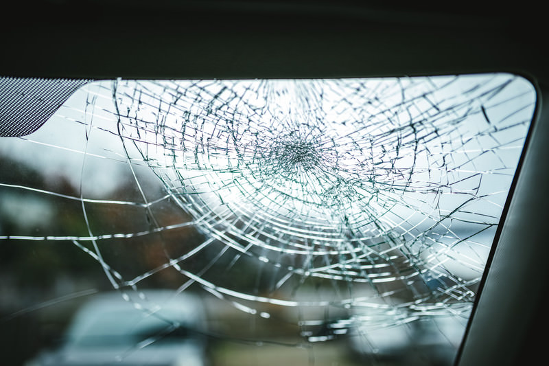 A flying stone cracks the windshield