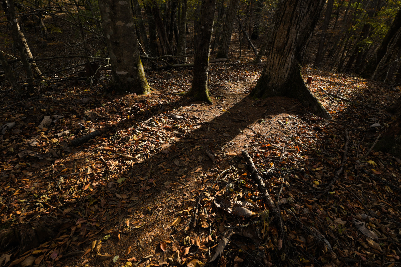 Shadows of Trees Stretching Through the Autumn Forest