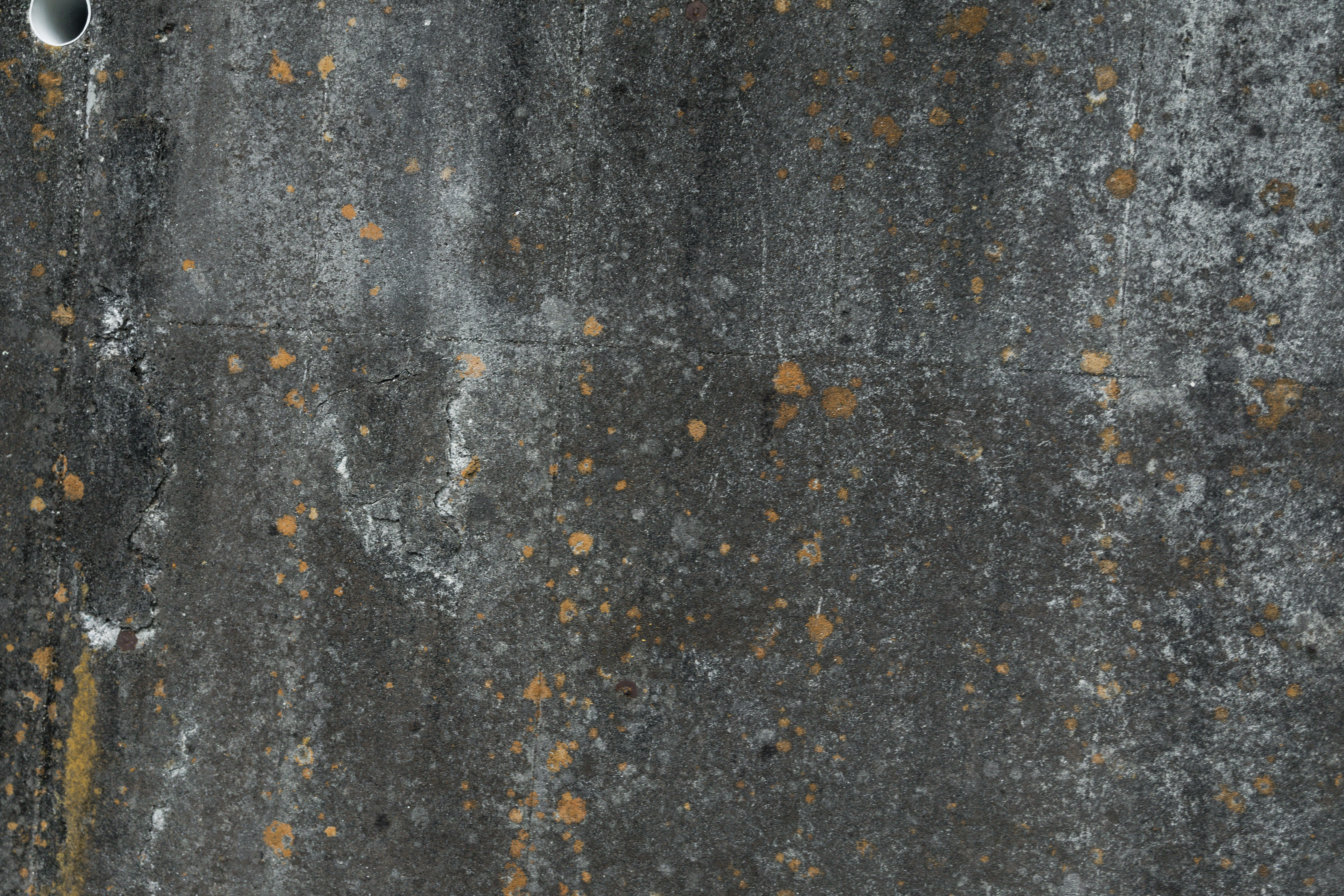 ひび割れした汚れた外壁の写真素材です。グレーのコンクリート壁表面に細かなひび割れが入り、茶色い錆汚れや黒ずみが付着した状態で、建物の経年劣化を視覚的に表現しています。建築関連のデザインや老朽化・劣化を表現する素材として活用できます。