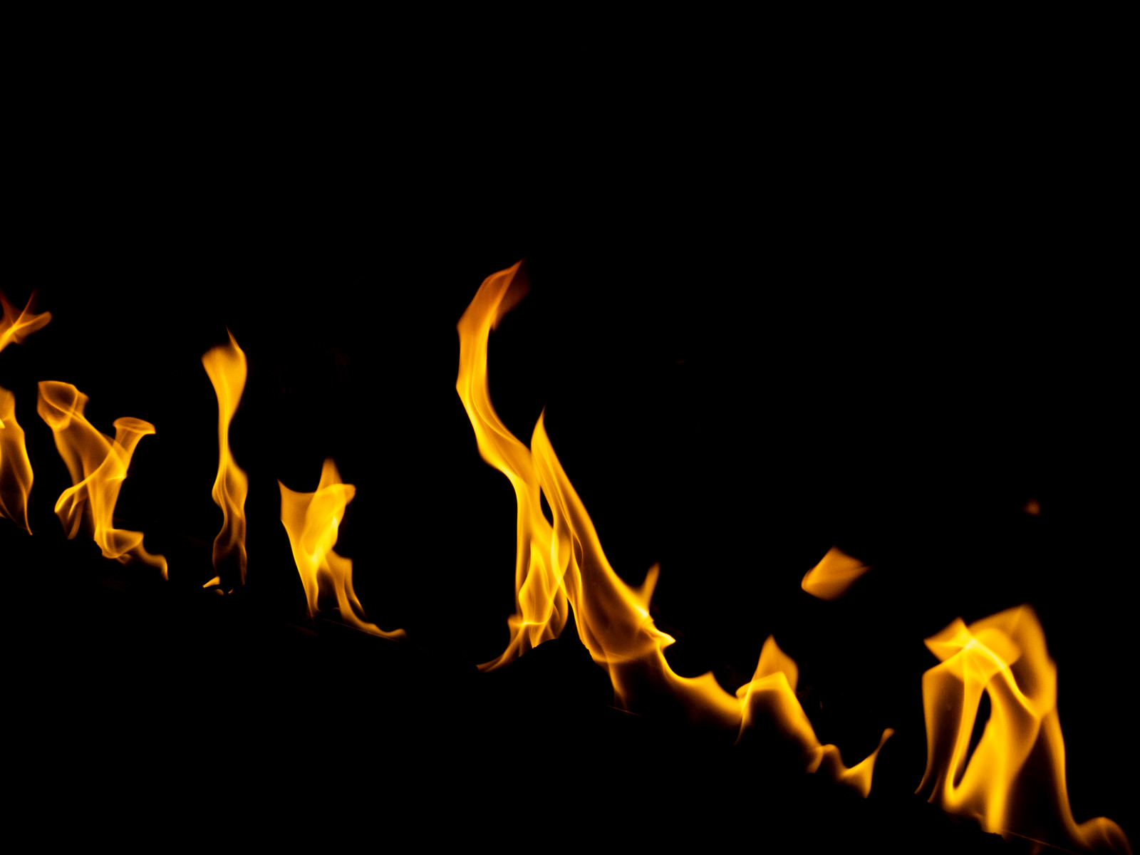 複数の炎が横に並んで燃える写真素材です。黄色とオレンジ色の炎が波打つような形で立ち上がり、黒背景に対してその形状がはっきりと見える。火をテーマにしたデザインや背景素材におすすめです。