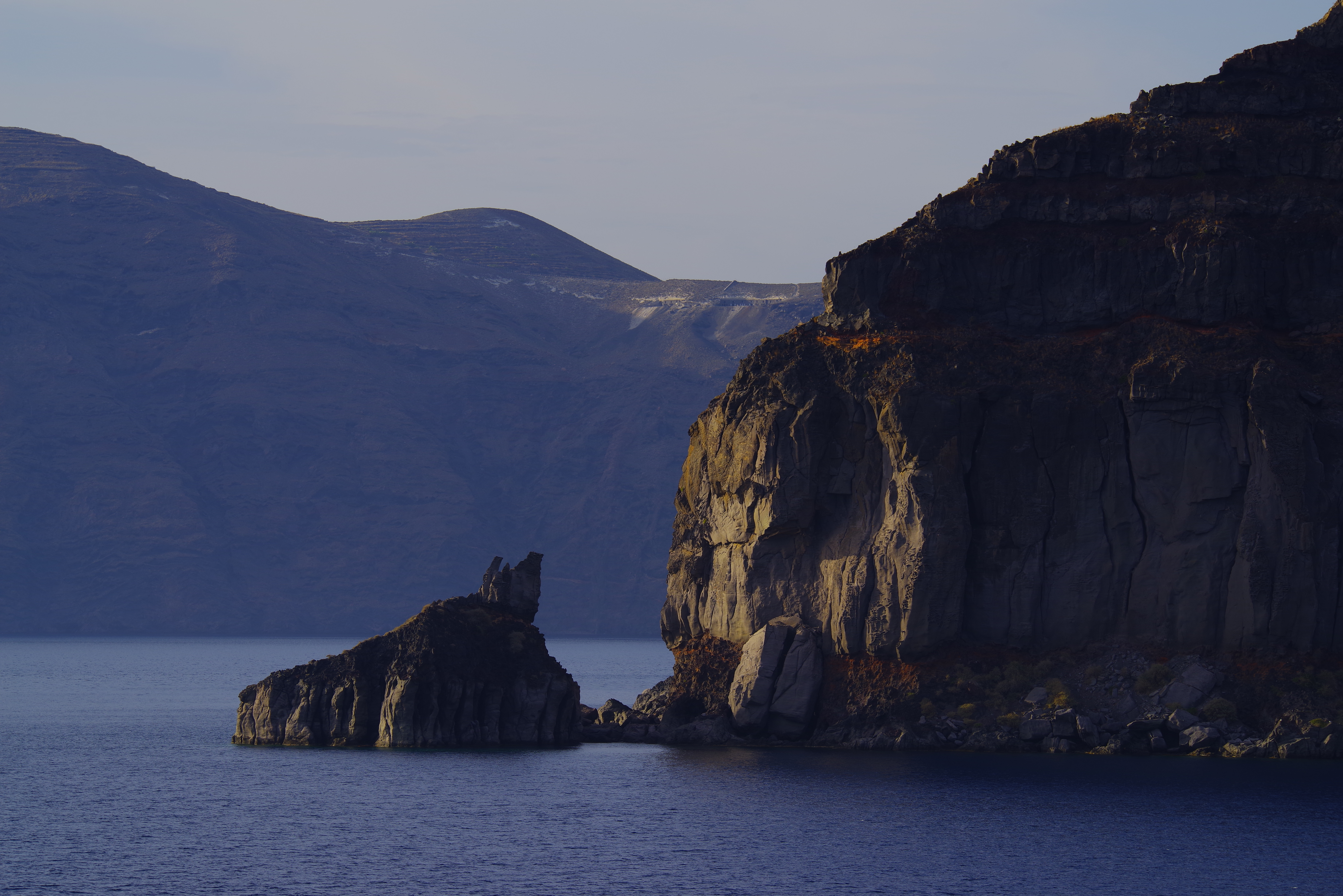 カンガルーに見える切り立った崖(イタリア)の写真素材です。ベネツィアの海岸で、夕暮れの海に浮かぶ巨大な岩がカンガルーのような独特の形に見え、黒いシルエットが夕焼けに浮かび上がる景観が特徴です。ヨーロッパ旅行や風景写真に最適です。