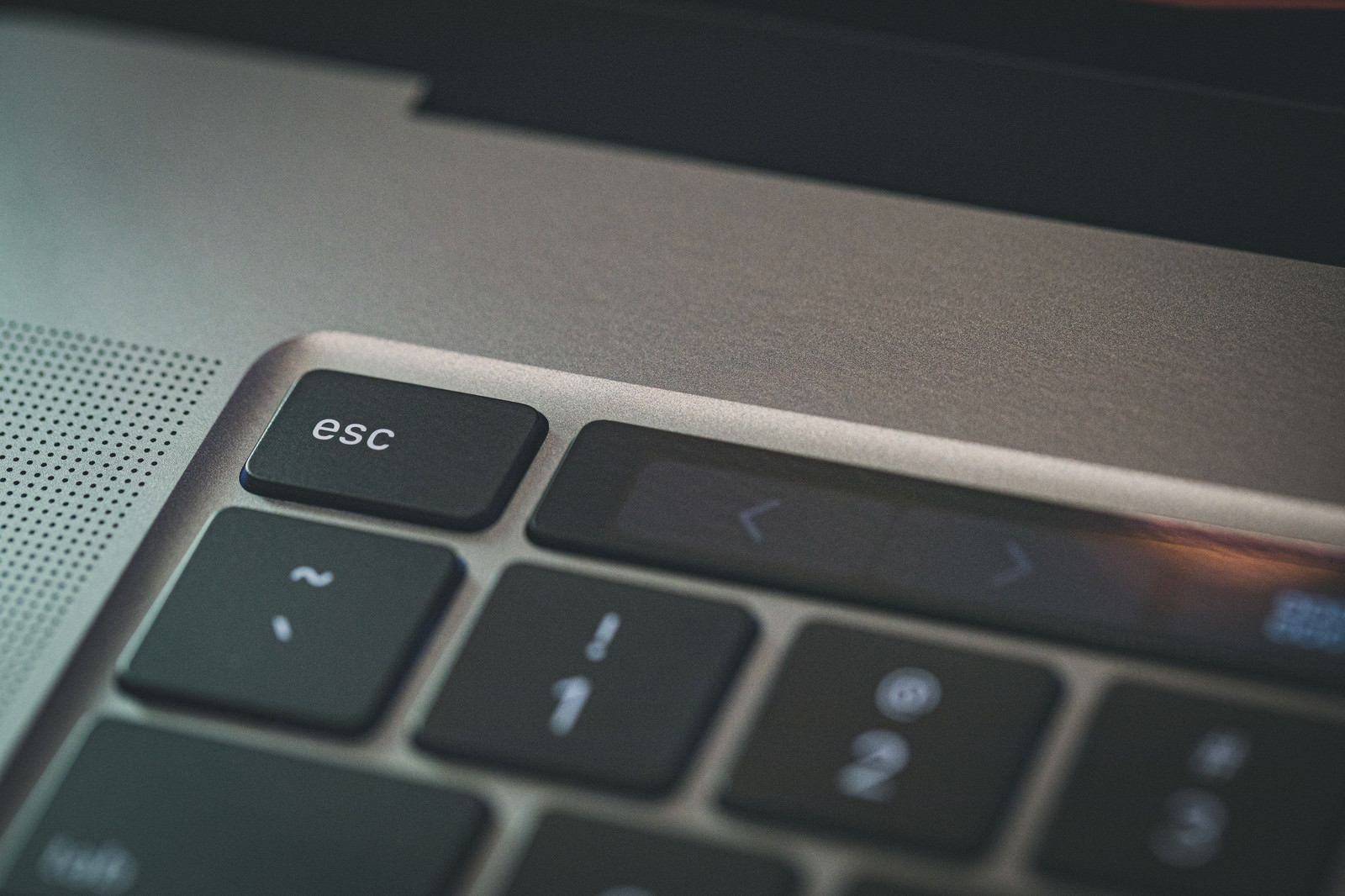 MacBookの物理ボタン、エスケープキーとタッチバーのフリー写真素材