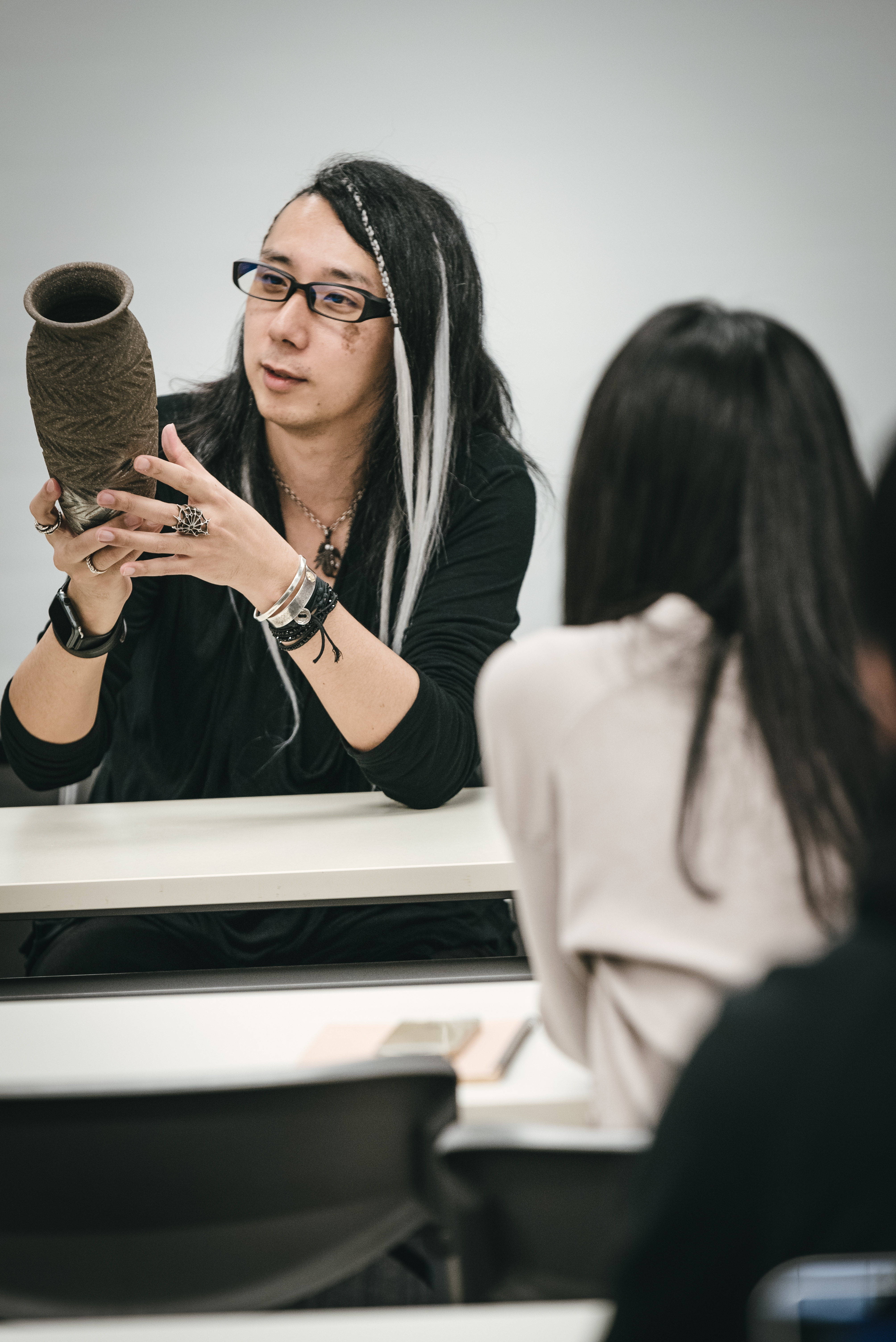 A man talking about the appeal of pottery to seminar participants