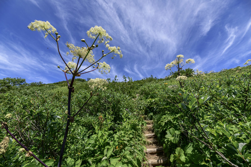 View of the Mountain Summit Area with Angelica Flowers in Bloom (Mount Hiuchi)