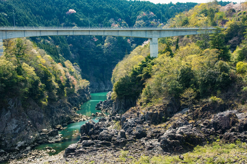 View of the Rugged Rocky Landscape Beneath Shin-Kowazawa Bridge (Gifu Prefecture)