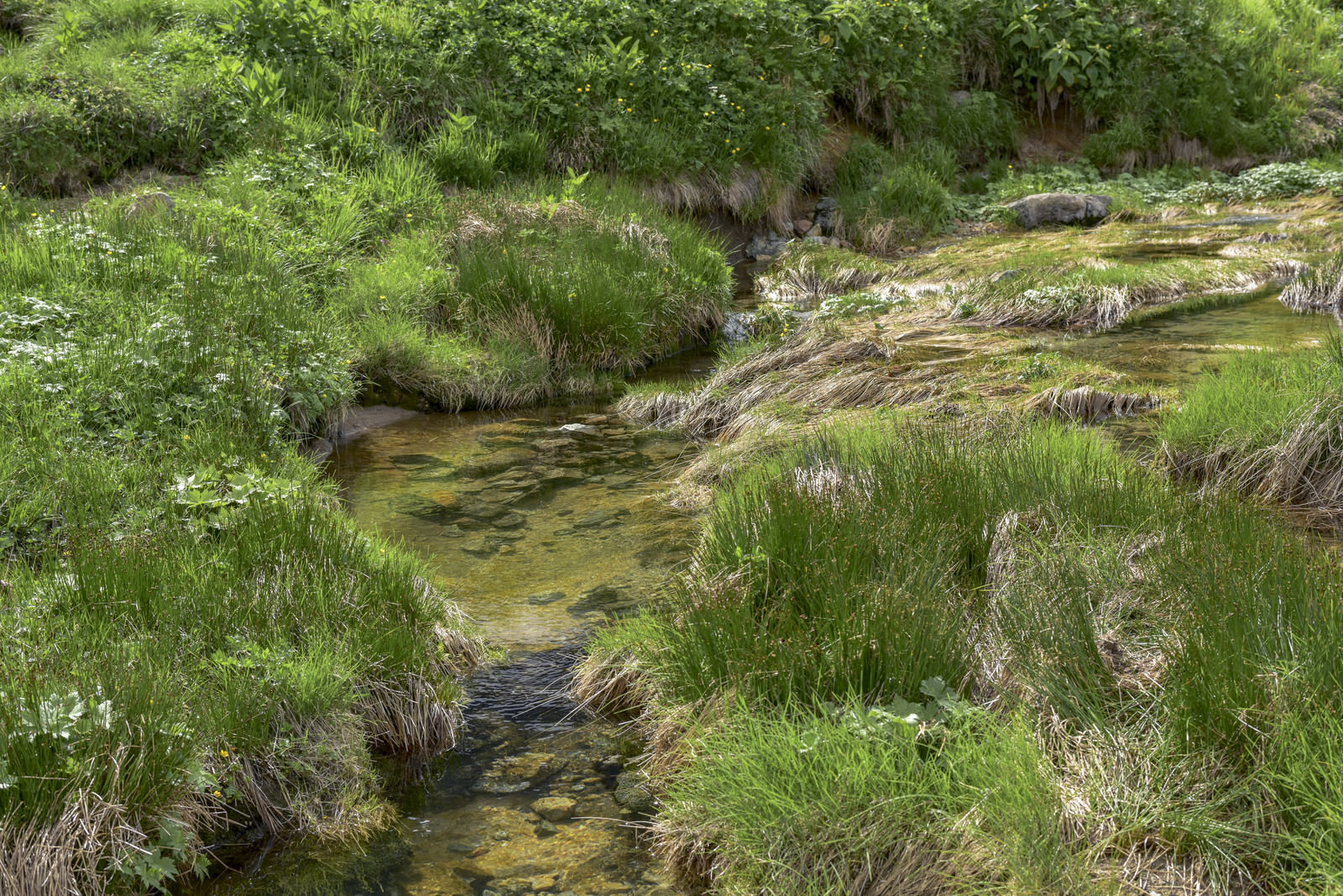 Clear stream flowing down the middle slopes of Mount Mitsumatarenge (Mount Washiba)