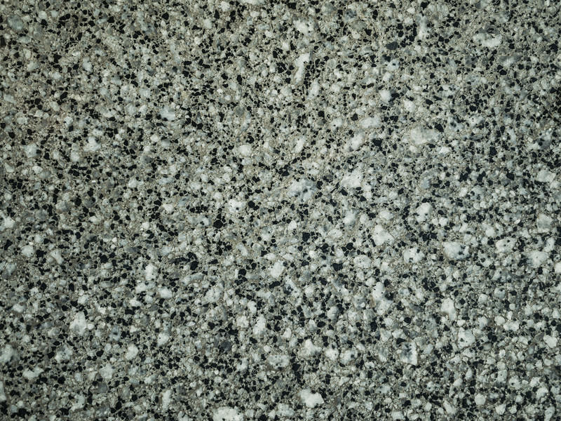 公園の水飲み場に使われている御影石の表面テクスチャーの写真素材です。灰色をベースに黒と白の粒状模様が均一に分布し、花崗岩特有の結晶構造が見られます。建築資材の背景素材やデザイン素材、印刷物など多様な用途に活用できます。