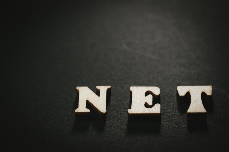 NETの英文字の写真素材です。黒い背景に白い立体的なアルファベットで「NET」と配置され、光と影によるリアルな3D効果で立体感を表現しています。ドメイン販売やサイト売買、中古ドメイン取引といったインターネット関連サービスのウェブサイト紹介ページなどにおすすめです。