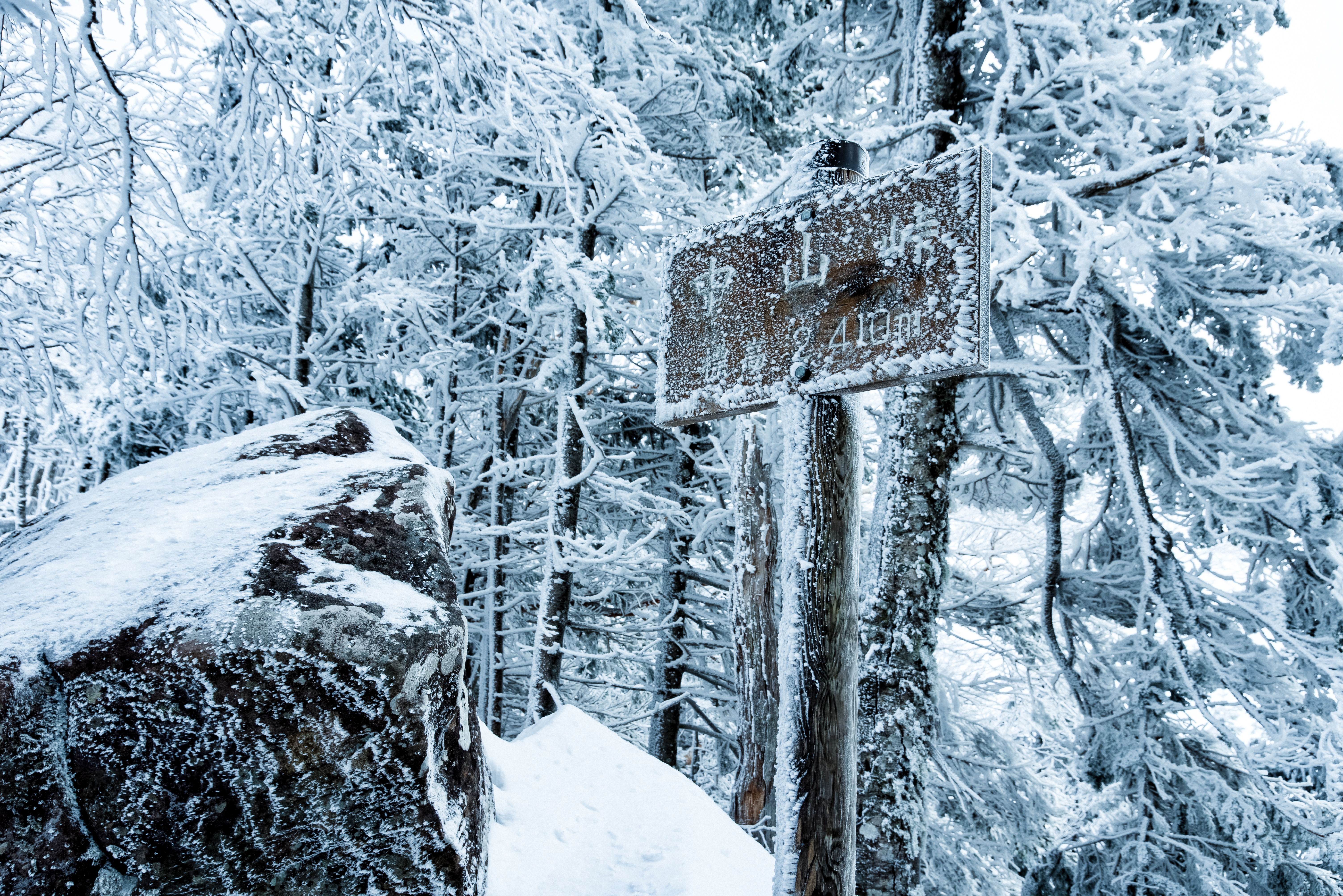 Frozen Sign Showing Elevation (Nakayama Pass)
