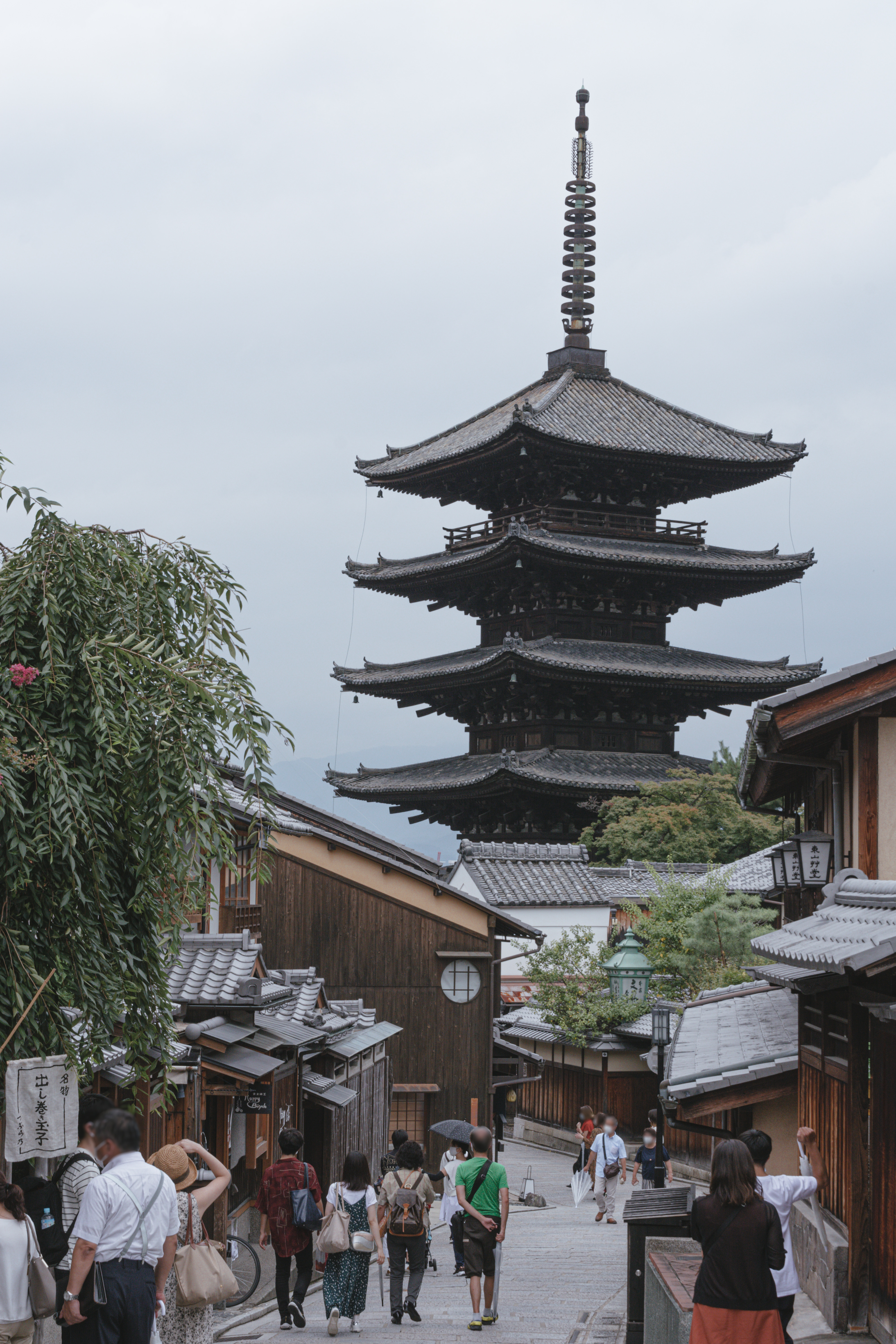 People enjoying sightseeing while looking up at Yasaka Pagoda (Kyoto)