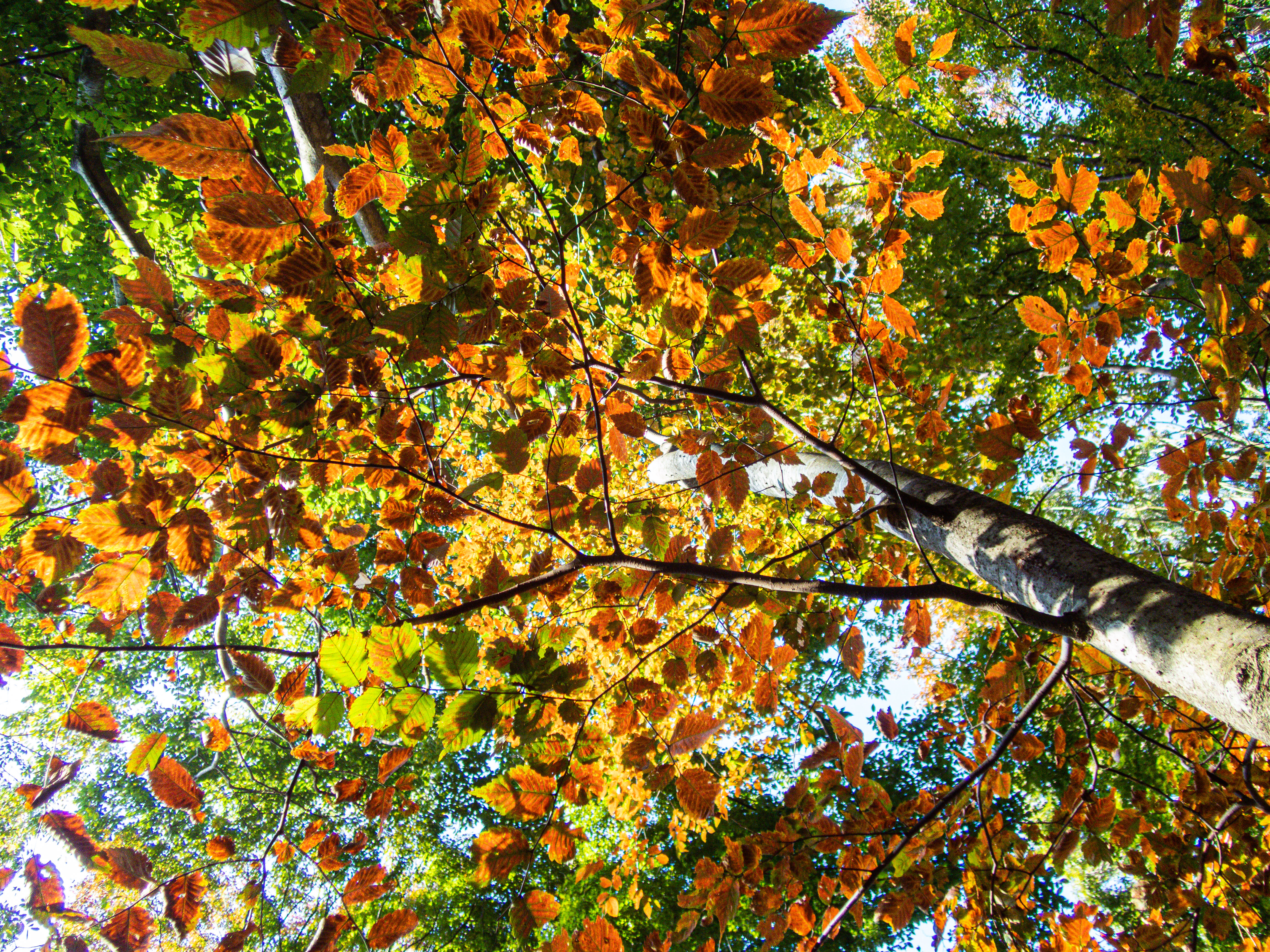 The underside of leaves beginning to turn autumn colors