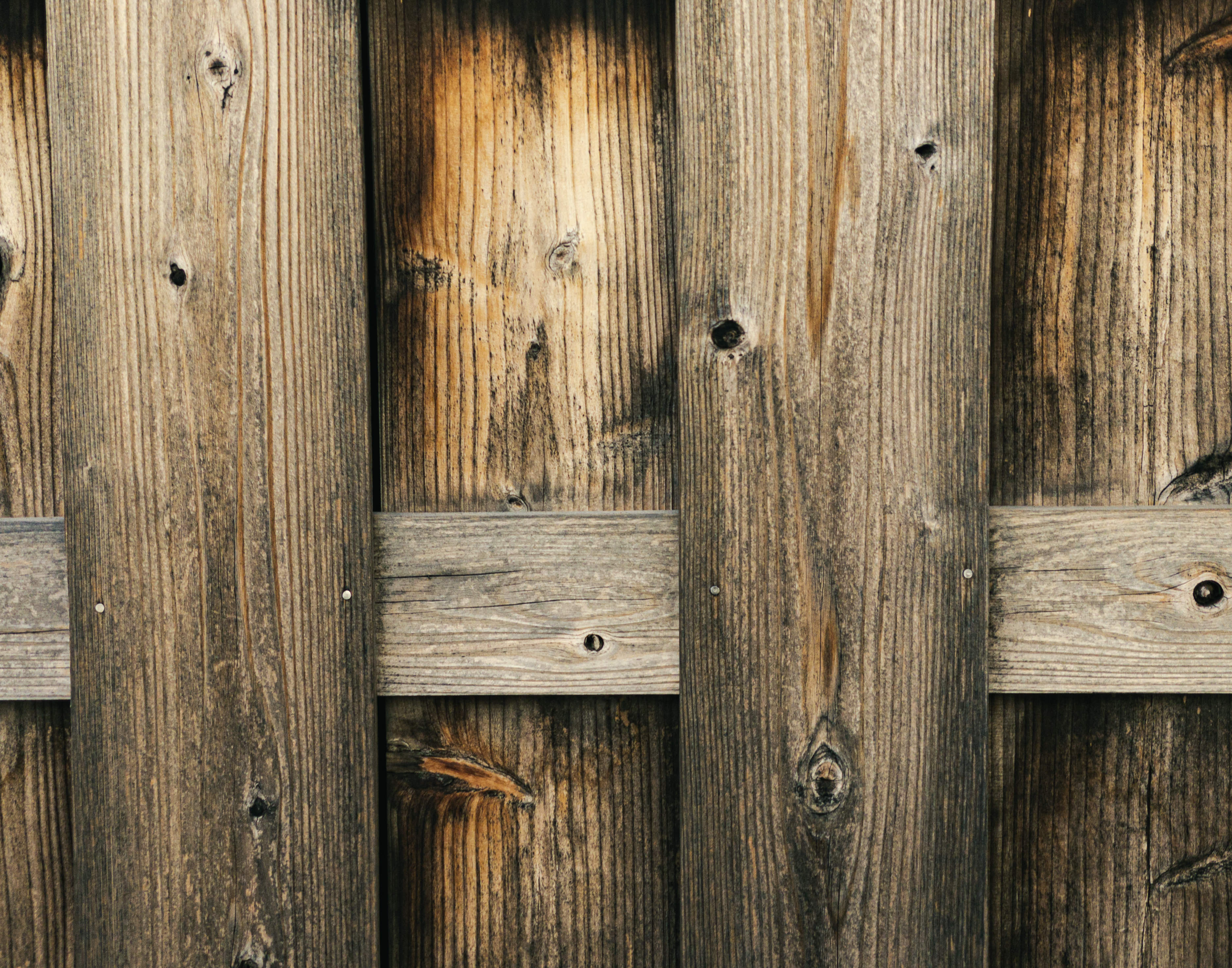 経年劣化した木製の板壁の写真素材です。縦に並ぶ板材には自然な木目が浮かび、表面には時間の経過による色合いの変化や傷、風合いが見られ、古材独特の味わいを呈しています。ナチュラルやヴィンテージ系のデザイン背景、和風テイストの素材制作におすすめです。