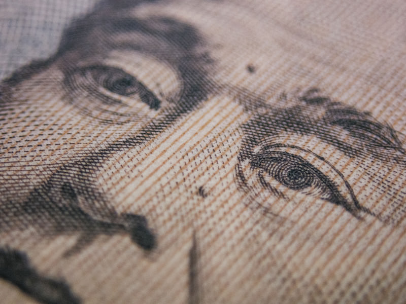 一万円札の福沢諭吉肖像の写真素材です。布地の上に置かれた紙幣で、光と影により立体感が強調されている状態です。金融関連の資料やお金に関するコンテンツ制作、プレゼンテーション、教育教材などに活用できます。