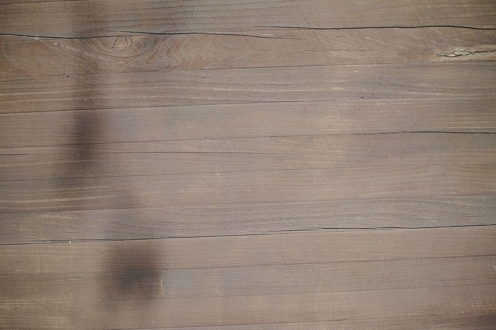 黒いシミと仕切り板のテクスチャーを持つ木材の板の写真素材です。横に並んだ板材の自然な木目模様と温かみのある色合い、黒いシミが入った質感豊かな表面を備えており、背景素材やデザインの装飾などにおすすめです。