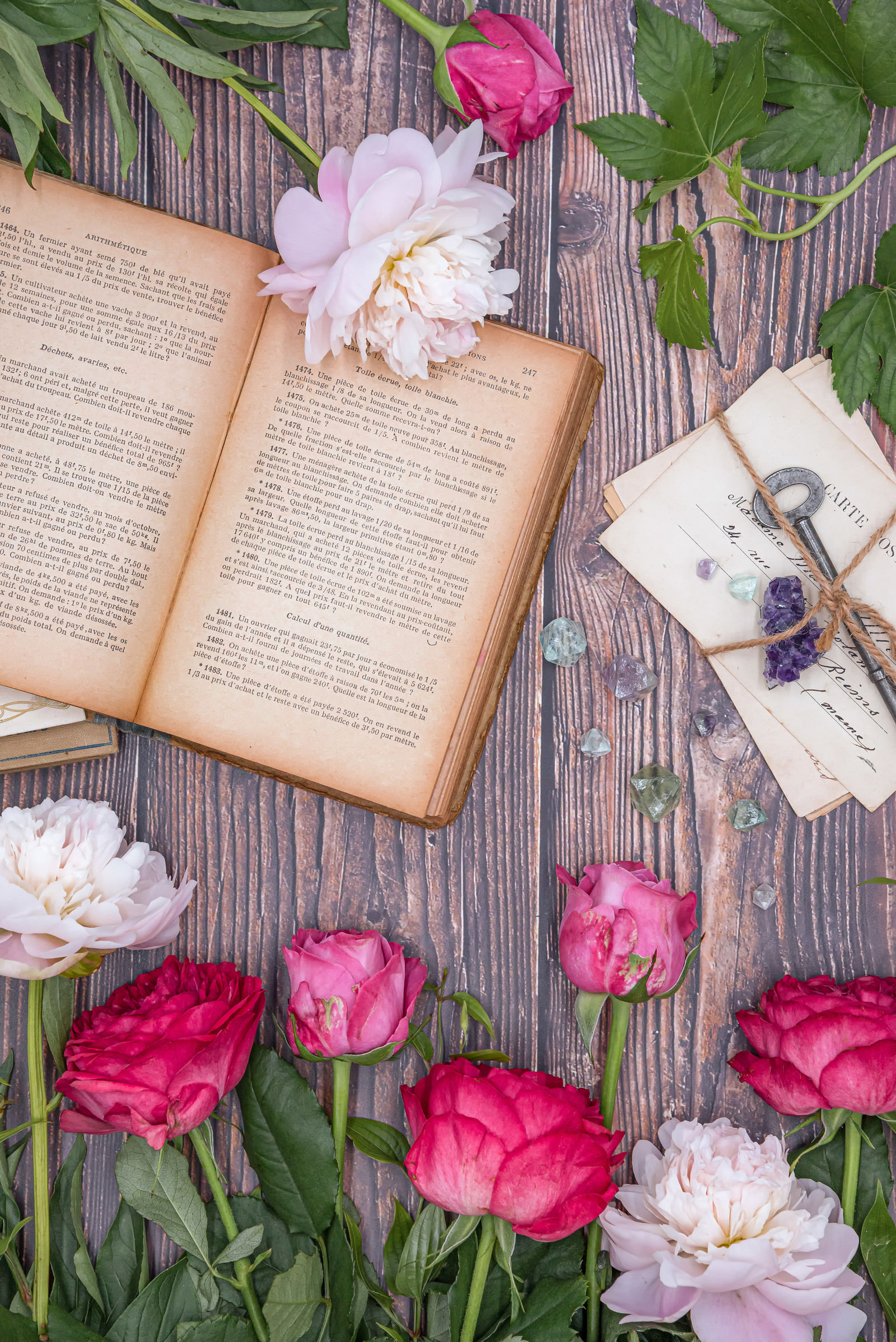Antique Books and Letters Surrounded by Fresh Flowers