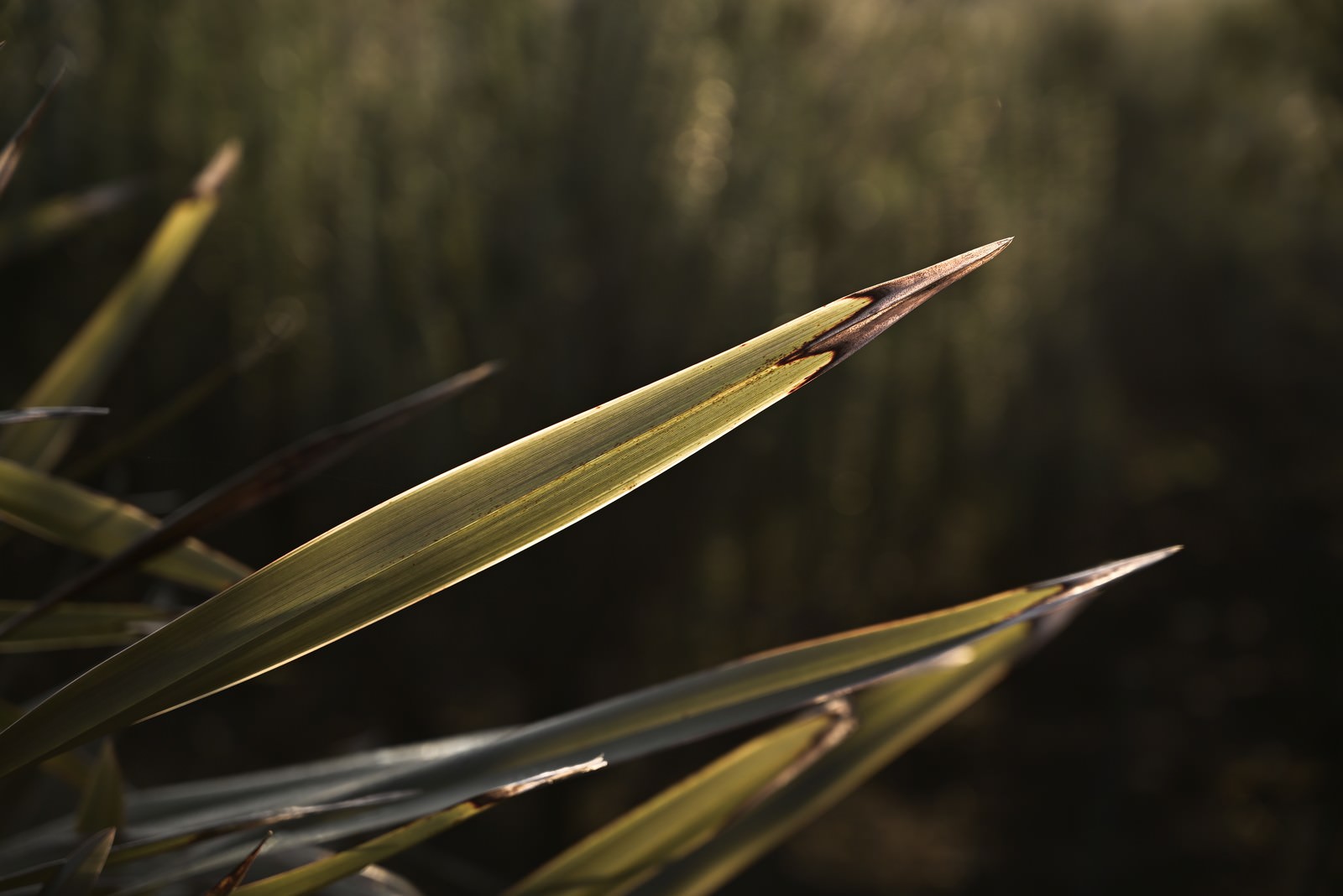 Sharp Leaf Tips Emerging in Dim Light