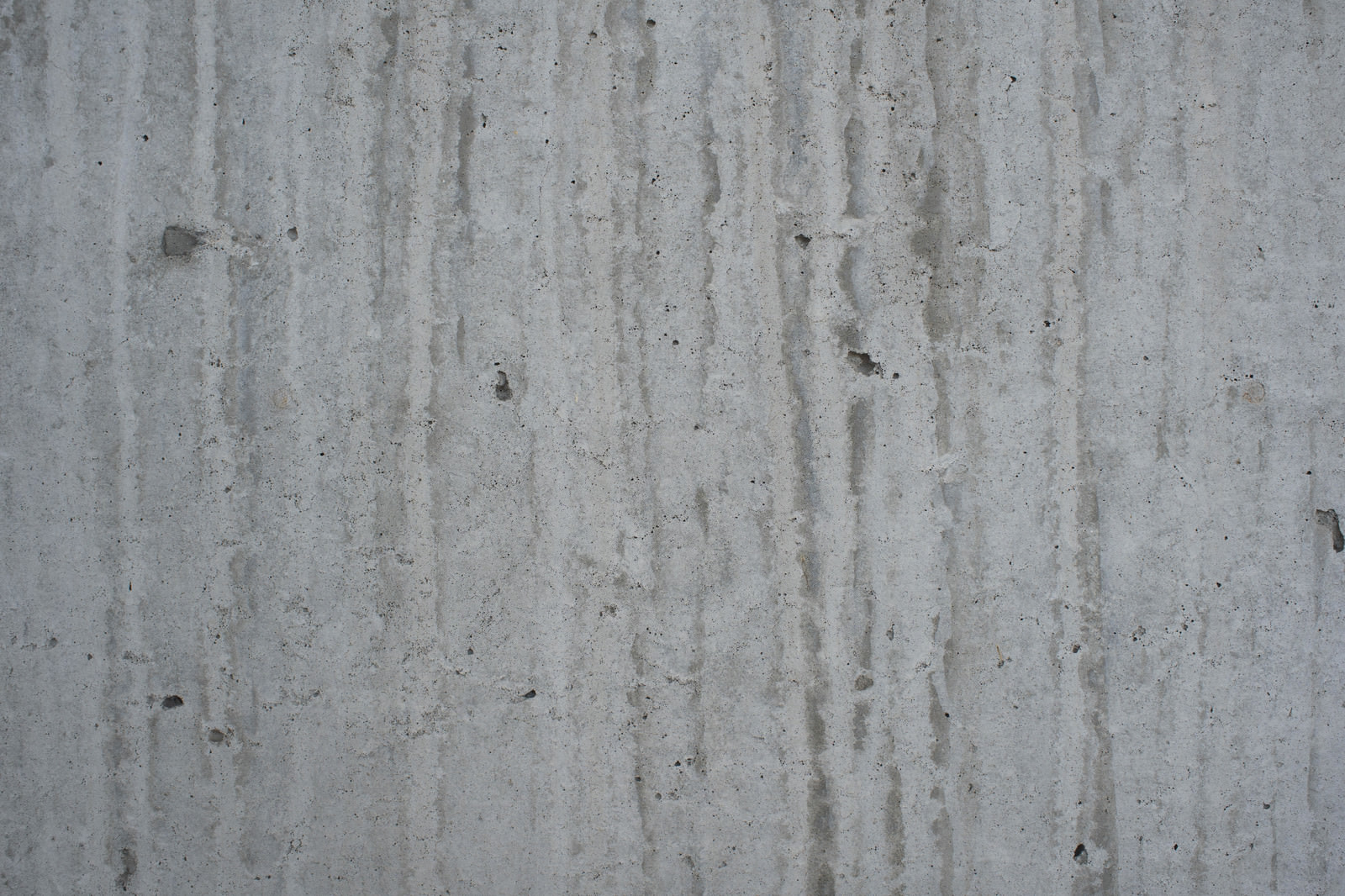 コンクリート壁の汚れと雨染みの写真素材です。グレーの壁面に縦に流れる汚れや染みが複数見られ、雨垂れによる風化や劣化した質感が実在しています。建築資料やテクスチャー素材、デザイン背景などにおすすめです。