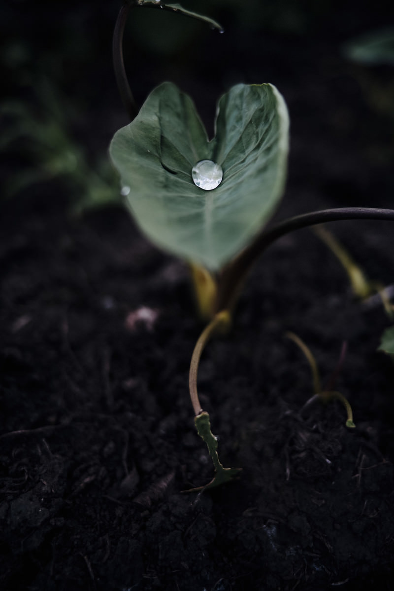 Pearl-like Water Droplets Collected on Taro Leaves