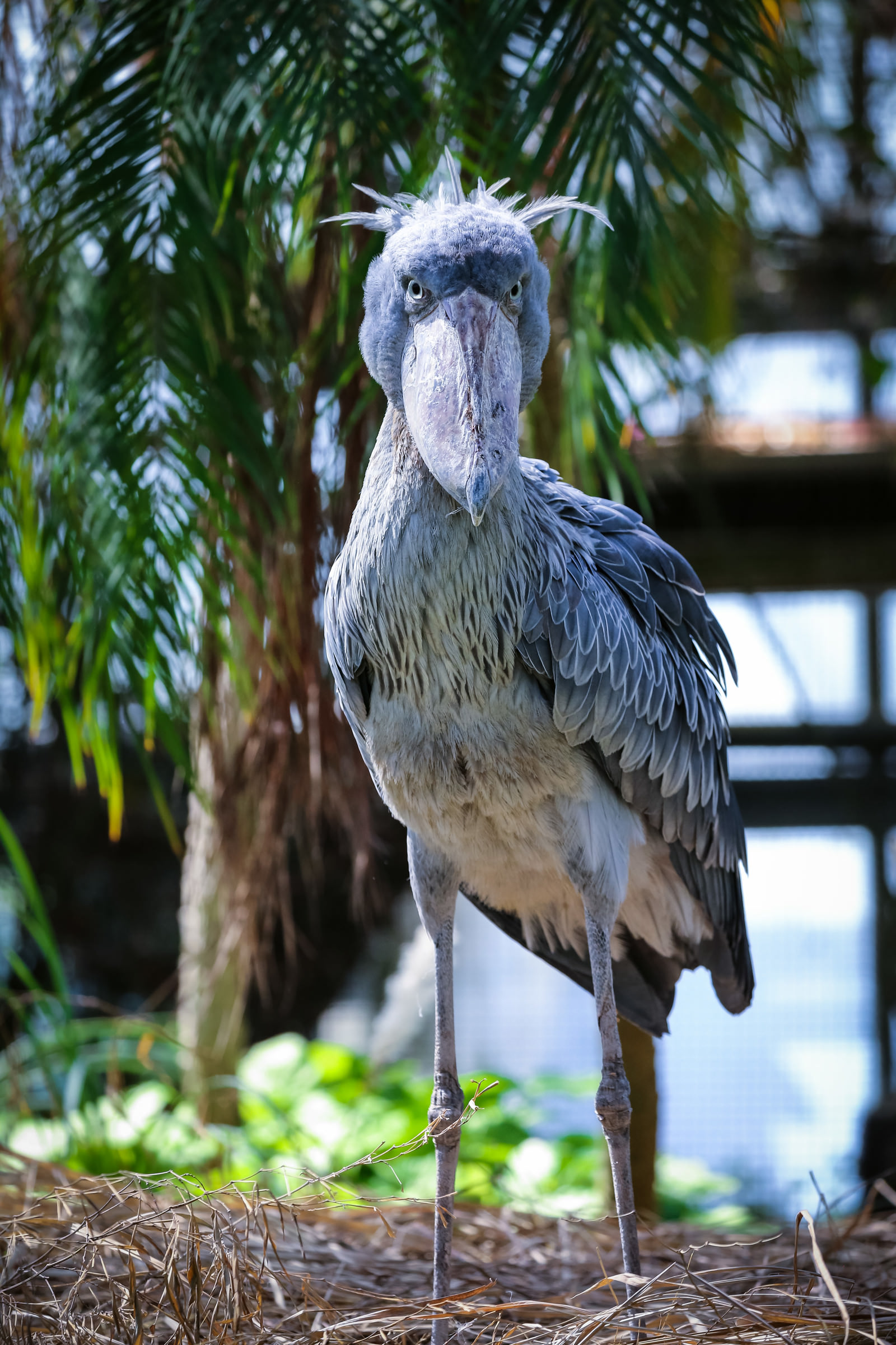 大きなくちばしで仁王立ちするハシビロコウのフリー写真素材