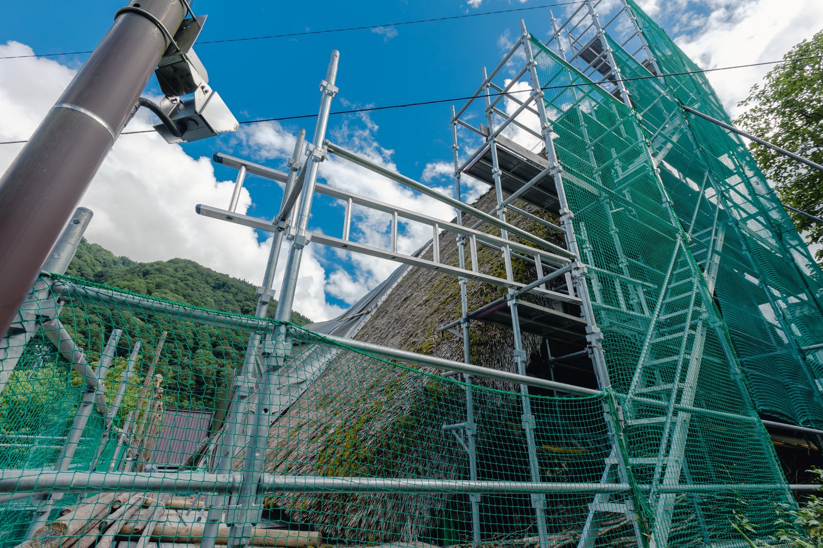 Scaffolding on the Thatched Roof of a Gassho-zukuri House (Nanto City, Toyama Prefecture)