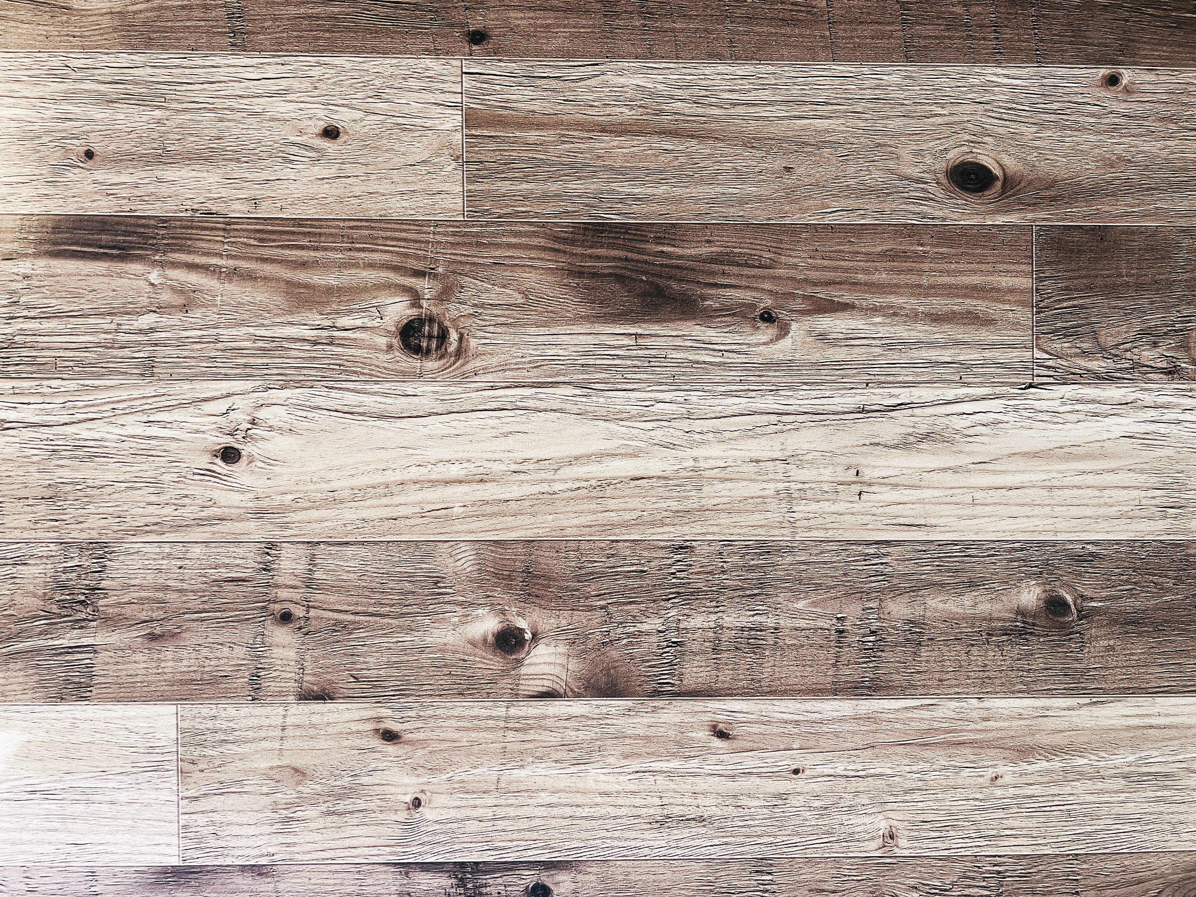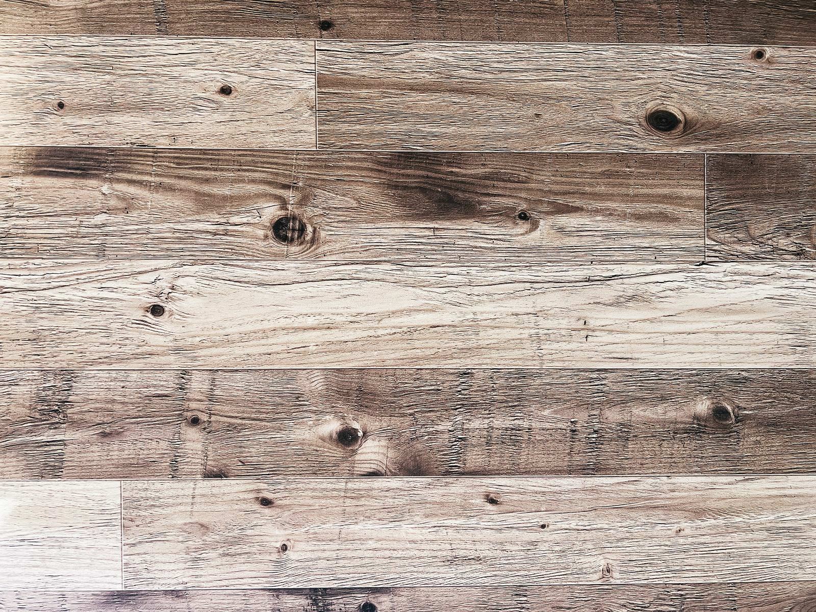 大小の節と木目のベニア板の写真素材です。横に並ぶ木板には粗い節や細かな木目の筋が見え、フローリングや建築資材として使用される質感を表現しています。茶色を基調とした温かみのある質感を呈しており、建築資材やインテリアデザイン、背景素材、ウェブサイトなどに活用できます。