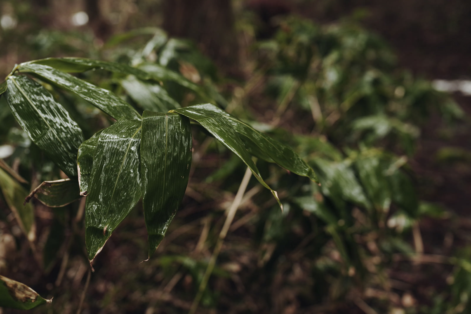 雨に濡れる笹の写真素材です。緑色の笹の葉に水滴が付着し、しずくがきらめく雨上がりの瞬間を捉えた一枚。爽やかな新緑と自然の美しさが表現でき、季節表現や環境テーマのデザイン素材におすすめです。