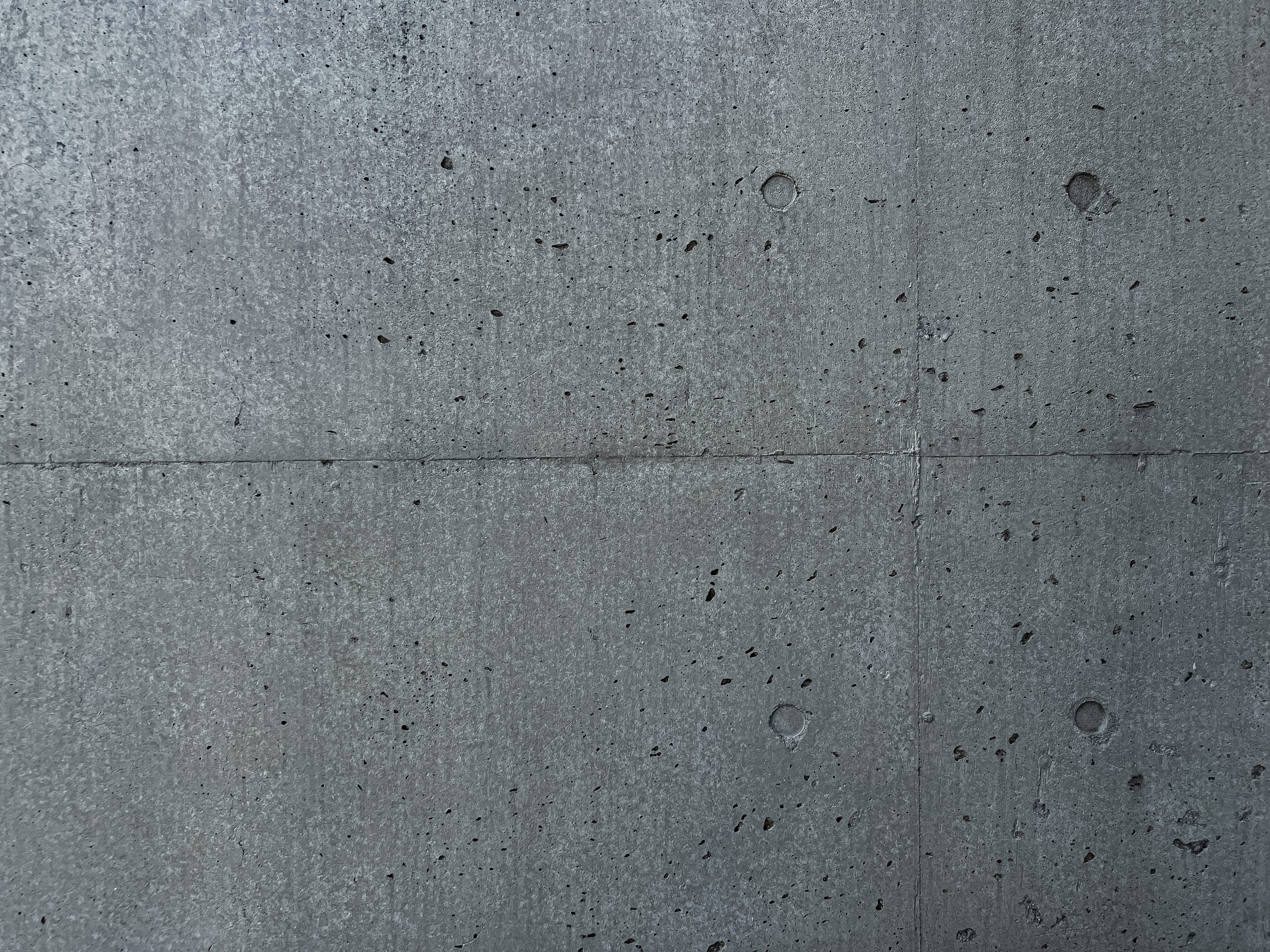 グレーのコンクリート壁のテクスチャーの写真素材です。表面の細かな気泡や質感が見られ、継ぎ目のラインが水平に走る無機質な仕上げになっています。建築資料やデザイン背景、インダストリアル系コンテンツ制作に活用できます。