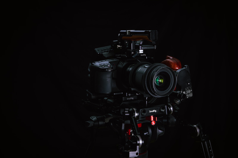 赤いアクセントが入ったSmallRig付きの一眼レフカメラのフリー写真素材