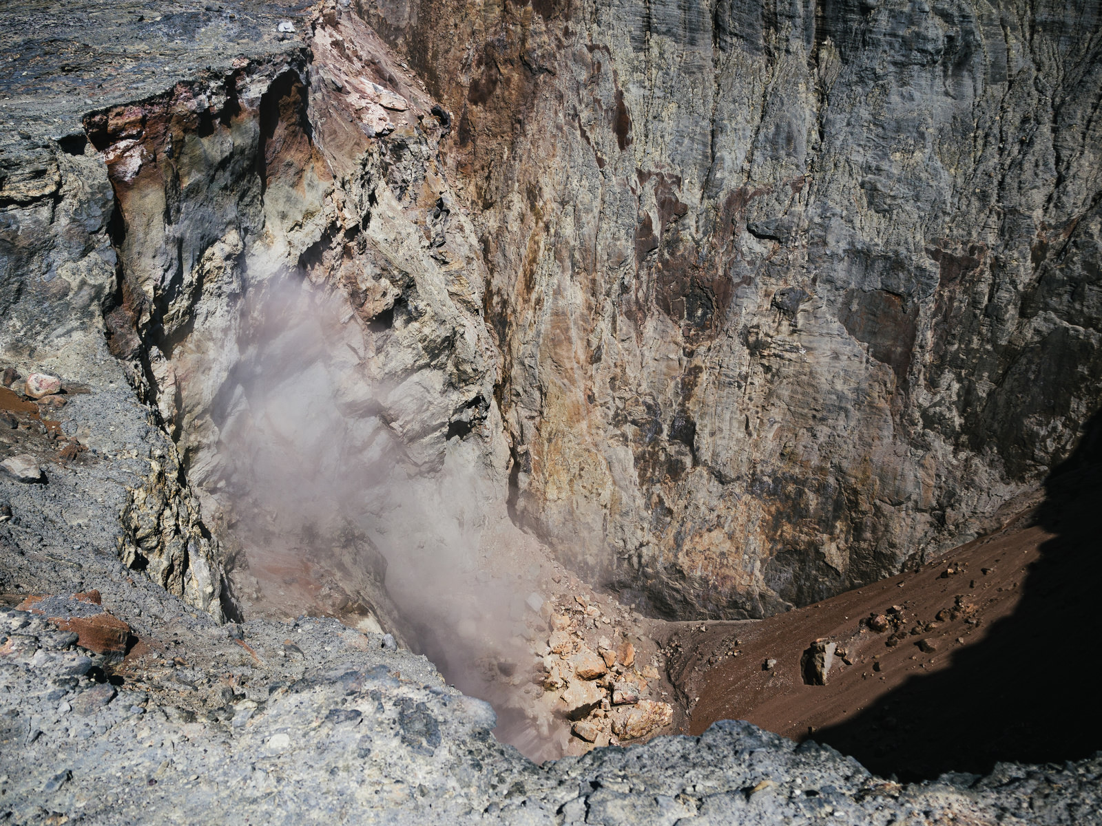 硫黄島の鶯地獄から噴気が立ち上る様子の写真素材です。濃い灰色の岩肌から白い噴気が勢いよく立ち上がり、地下の地熱活動が活発に行われていることが見て取れます、この地域は火山性の地質が特徴で、継続的な地熱現象が観察できる貴重なスポットです。地学教材や火山地形の解説、地域の自然紹介などに最適です。