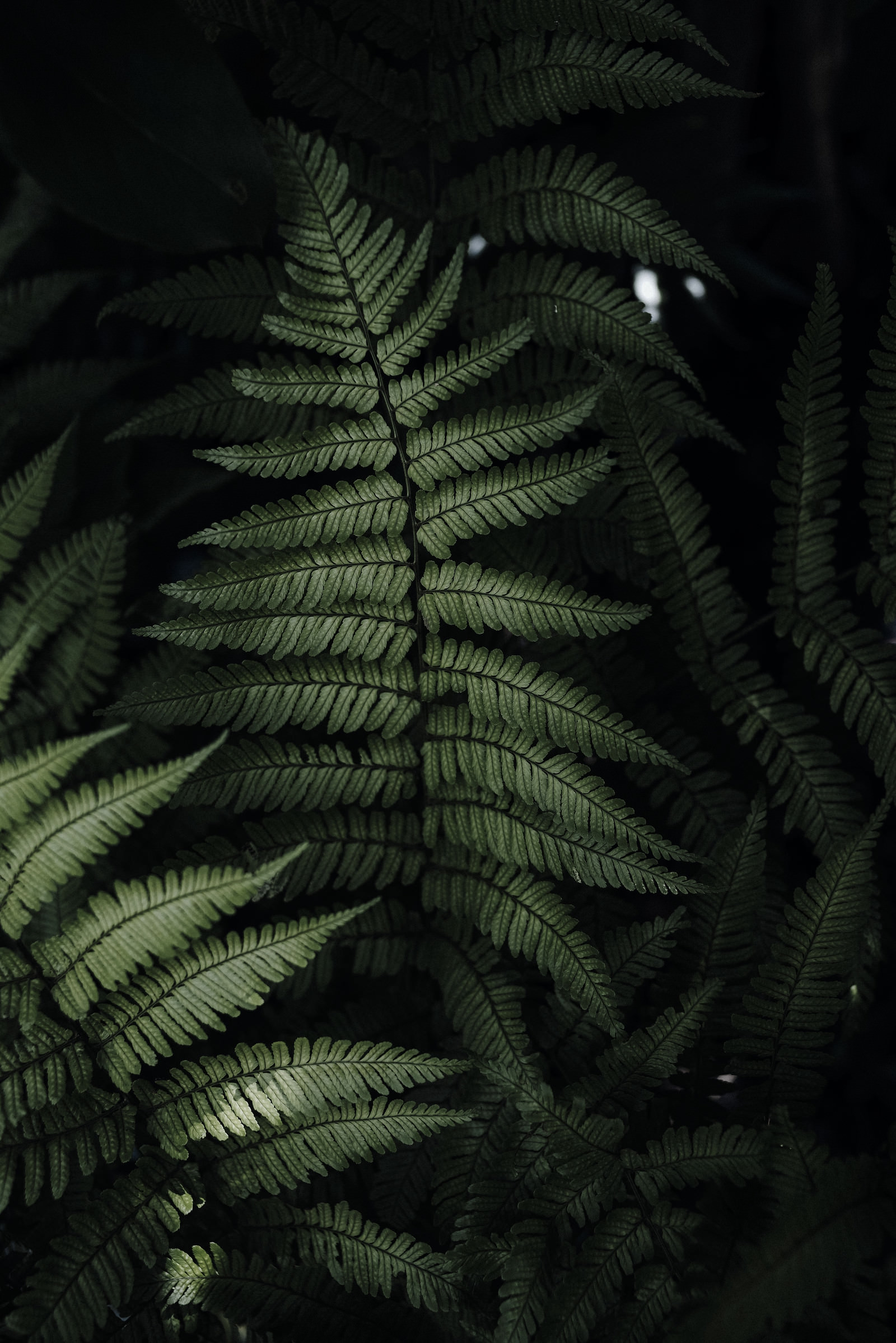 Fern Leaves Emerging from Darkness