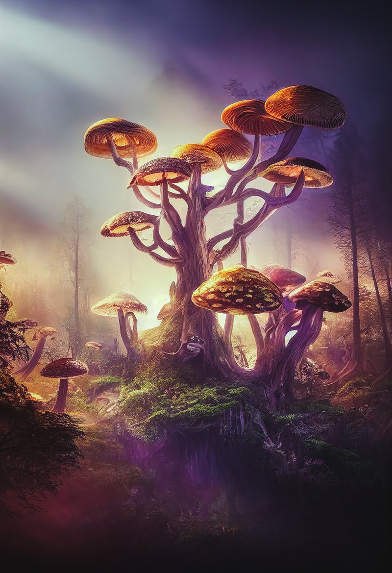 「巨樹、きのこ、幻想的」に関連するフリー素材