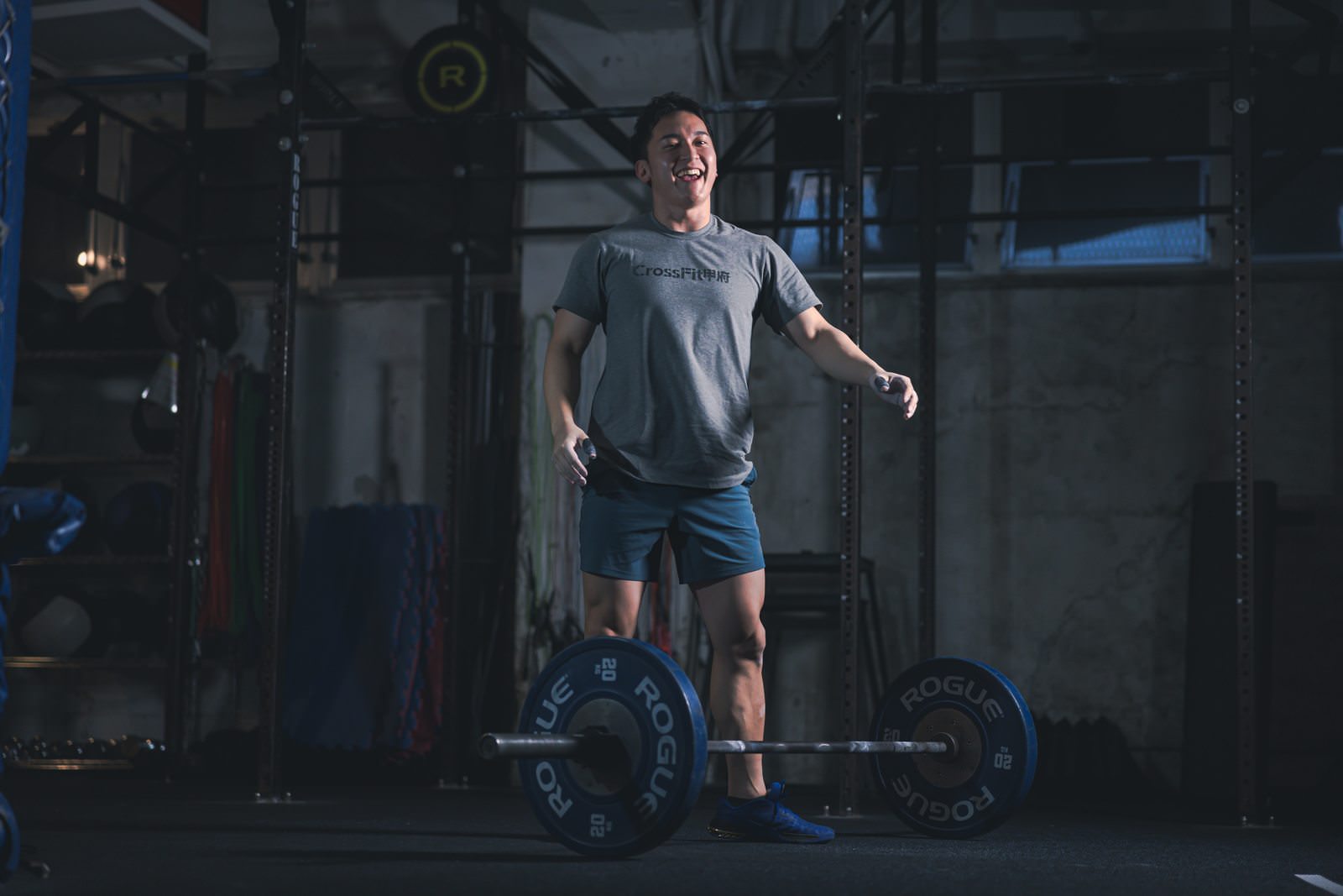 英語のページ:A man showing an expression of deep emotion after completing his weightlifting sets